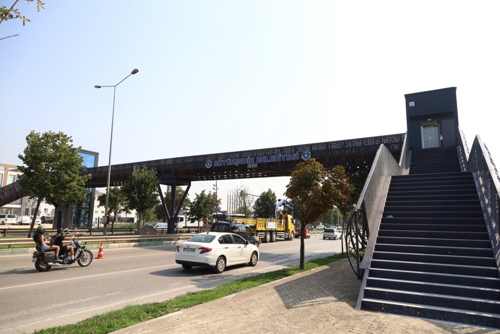 Bursa'da köprü ve kavşaklar, yeni yollar, yol genişletme çalışmaları ve raylı sistem yatırımları ile trafiğin sorun olmaktan çıkması için yoğun mesai harcayan Büyükşehir Belediyesi, diğer taraftan trafik seyrinin artması ve yaya güvenliğinin sağlanması adına yeni hamleleri devreye alıyor. Bu çalışmalar kapsamında İzmir yolu Ürünlü ve Alaattinbey arasında yaya geçişi için kullanılan bas-geç sinyalizasyon uygulamasının trafik akışını yavaşlattığını tespit eden Büyükşehir Belediyesi, yaya üst geçitleriyle hem yaya güvenliğini sağladı hem de trafik akışını hızlandırdı. Asansörlü olarak son derece konforlu şekilde yapılan ilk üst geçidin kullanılma açılmasıyla birlikte bu noktadaki bas-geç sinyalizasyon sistemi kaldırıldı. Böylelikle trafik akışı kesintiye uğramazken, yayaların da güvenli şekilde karşıya geçmelerine imkan sağlandı. Son düzenlemelerin yapıldığı ikinci üst geçit de önümüzdeki günlerde devreye alınacak ve buradaki sinyalizasyon sisteminin kaldırılmasıyla İzmir yolunda kesintisiz ulaşım sağlanacak.
