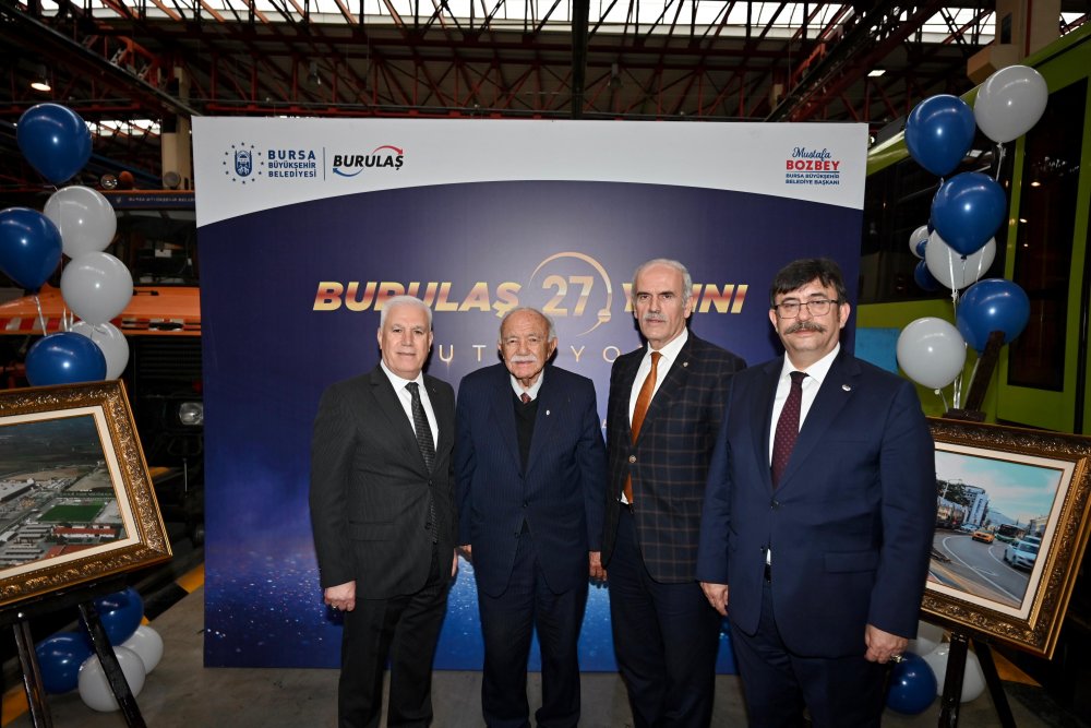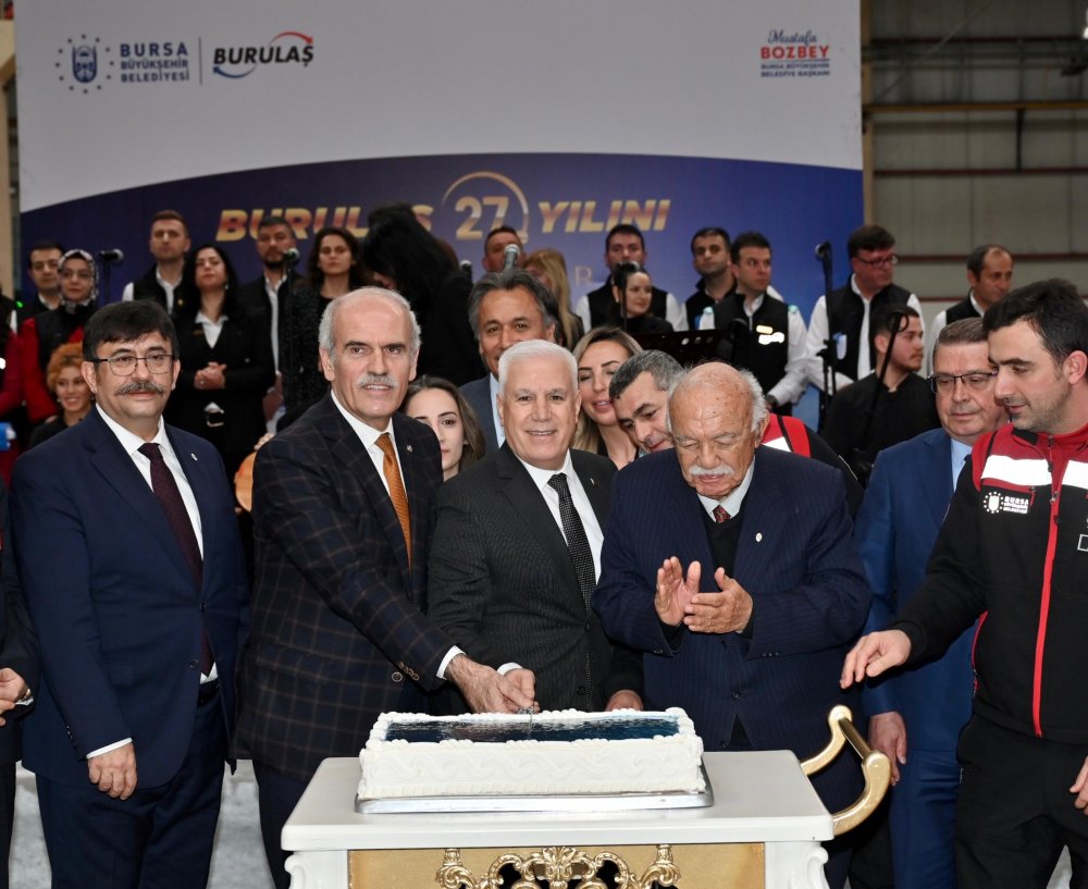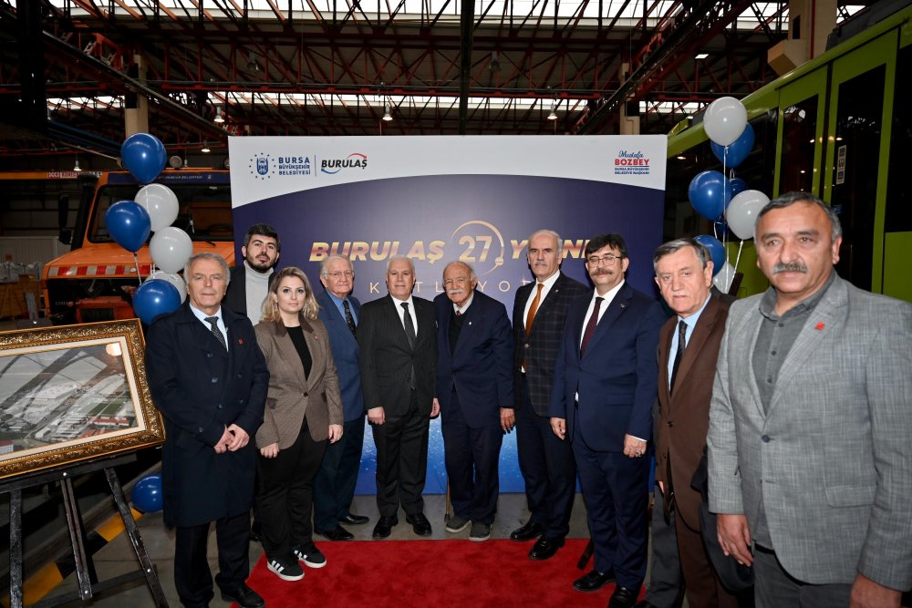 Bursalıların konforlu ve güvenli ulaşımı için hizmet veren Büyükşehir Belediyesi iştiraklerinden BURULAŞ, kuruluşunun 27’nci yıl dönümünü kutluyor. BURULAŞ Ana Bina RS Bakım Atölyesi’nde düzenlenen törene, Bursa Büyükşehir Belediye Başkanı Mustafa Bozbey’in yanı sıra Büyükşehir Belediyesi’nin önceki dönem başkanları Erdem Saker ve Recep Altepe, Büyükşehir Belediyesi Genel Sekreteri Doç. Dr. Ergül Halisçelik, Genel Sekreter Yardımcıları, BURULAŞ Genel Müdürü Fahrettin Beşli, siyasi partilerin temsilcileri, meslek odalarının ve sivil toplum kuruluşların temsilcileri ile belediye personeli katıldı. Program, BURULAŞ’ın 27 yıllık sürecini anlatan film gösterimiyle başladı. Şirketin emektar çalışanlarının da söz alarak duygularını dile getirdiği etkinlikte, BURULAŞ’ın hizmetleri de kısa videoyla anlatıldı.