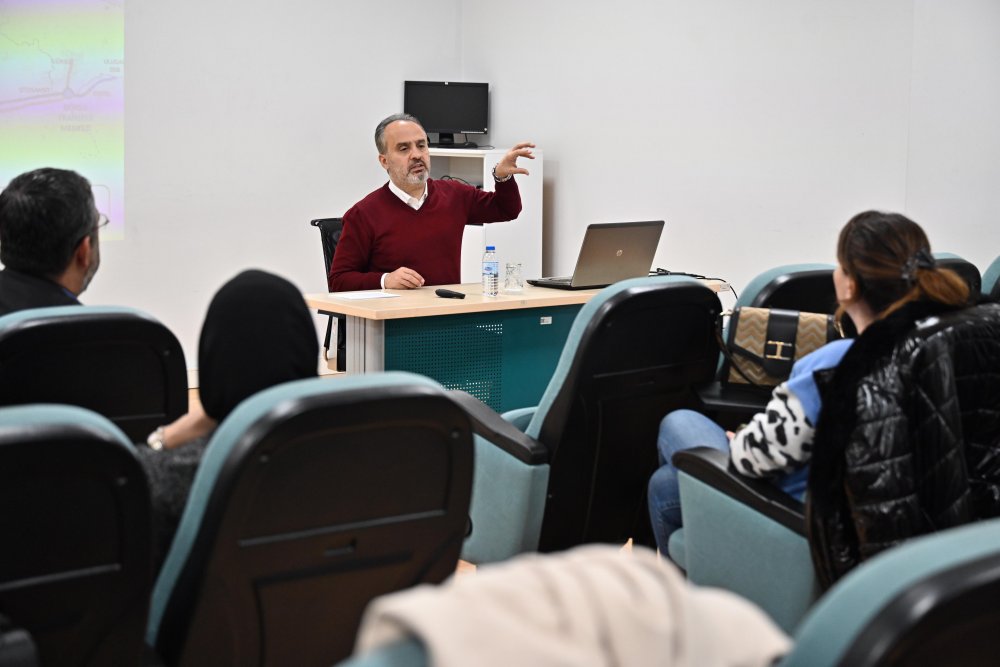 Uludağ Üniversitesi Öğretim Üyesi Doç. Dr. Yüksel Okşak ve Ulaştırma Ekonomisi dersi öğrencileri, 5 yıldır olduğu gibi bu yıl da bir derslerini BURULAŞ binasında gerçekleştirdi. Derse konuk olarak katılan Büyükşehir Belediye Başkanı Alinur Aktaş, her geçen gün gelişen, büyüyen, 3 milyon 200 bini aşan bir nüfusa hizmet ettiklerini belirterek, hemen her ilde vatandaşların ilk şikayetlerinin genellikle trafik ve kent içi ulaşım olduğunu söyledi.