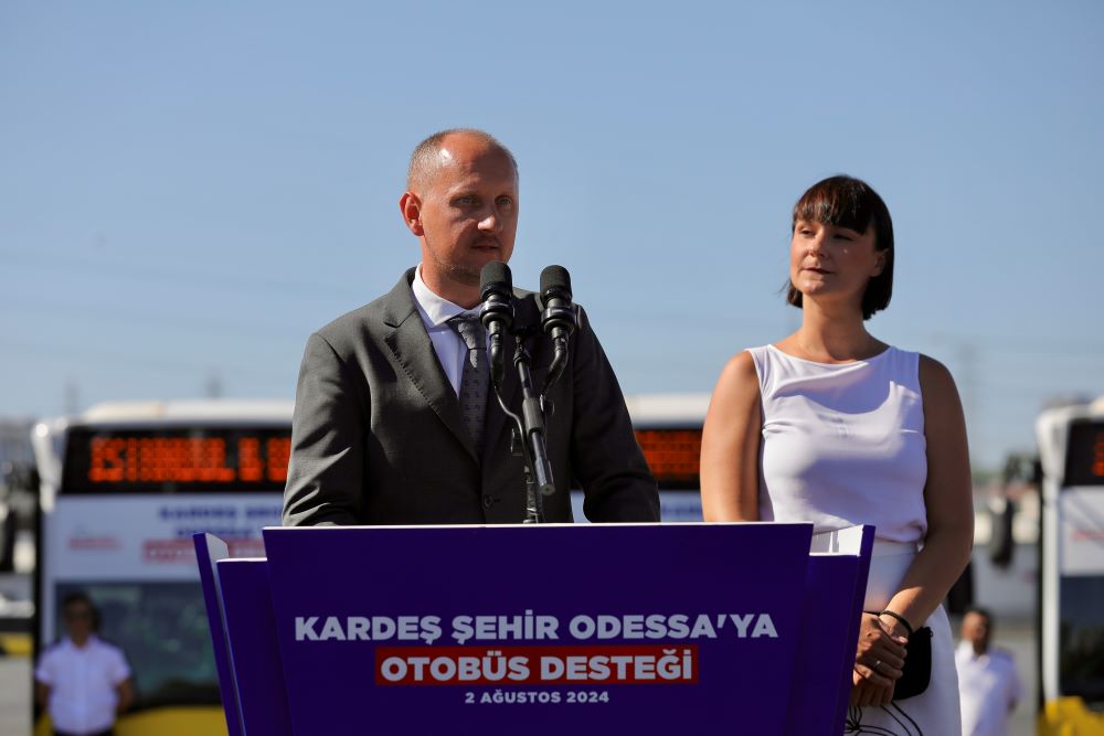 Ukrayna İstanbul Başkonsolosu Nedilskyi de konuşmasında şu ifadeleri kullandı: “Bugün, İstanbul ve Odessa şehirleri, bu şehirlerin sakinleri ve genel anlamda Ukrayna ve Türkiye halkları için özel bir gündür. Sayın Belediye Başkanı, İBB’nin kardeş şehir Odessa’ya yardım olarak verdiği 10 otobüsün teslim törenine sizinle birlikte katılmaktan büyük bir onur duyuyorum. Ukrayna'nın ve bilhassa Odessa'nın geçirdiği bu zor günlerde, İBB’nin, yaşananlara seyirci kalmaktansa, kardeş şehrine yardım eli uzatmayı seçti için ziyadesiyle minnettarız. İBB’nin kendileri için bir ‘mutluluk haftası’ düzenlediği küçük Odessalıların da bu otobüs teslim töreninde bulunması sembolik bir önem arz etmektedir. Ukraynalı çocukların da Odessa’ya döndükten sonra bu otobüs hizmetinden, diğer Odessa sakinleriyle aynı düzeyde yararlanacağından şüphem yoktur. Otobüs yardımı, İBB’nin Odessa'ya verdiği desteğin ikinci adımını oluşturmaktadır. Tüm Odessa sakinleri ve Ukrayna vatandaşları, kardeş şehir İstanbul'un bağışladığı ve günümüzde Odessa'nın büyük bir ihtiyaç duyduğu güçlü jeneratörler için minnettardır. Sayın Belediye Başkanı, Odessa sakinlerine ısı, ışık ve destek verdiğiniz için şahsınıza ve ekibinize teşekkürlerimi sunarım. Çok teşekkür ederim Sayın Ekrem Bey. Çok teşekkür ederim Türkiye.”