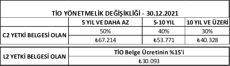 -Yeni Yönetmeliğe göre yeni (sıfırdan) TİO belgesi alımında 60 gün süreyle yüzde 30 ücret indirimi yapılması,