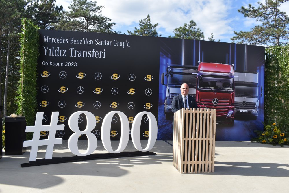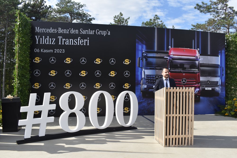 Araçların satışını gerçekleştiren Mercedes-Benz Türk bayii HESKA Motorlu Araçlar Kamyon Satış Müdürü İlyas Tolog’da bir konuşma yaptı ve şunları söyledi: Bugün burada Sarılar Grup’a 800 adet aracın teslimatı gerçekleştirmenen verdiği mutluluğu sizlerle paylaşıyor olmaktan dolayı gurur duyuyorum. HESKA Motorlu Araçlar olarak, yüksek standartlarda hizmet verme ve müşteri memnuniyetini ön planda tutma ilkesini benimseyerek Mercedes-Benz kamyon satışına bugüne kadar birçok başarılı satışa imza attık. Ancak bugünki teslimat törenimiz hem Sarılar Grup ile uzun yıllara dayanan işbirliği açısından, hem ağır araç endüstrisi ve ülkemiz ekonomisine sağlayacağı katkılar açısından ayrı bir önem taşıyor. Geçmişten bugüne Sarılar Grup ile kurduğumuz iş ortaklığımız zaman içerisinde dostluğa dönüştü ve bugün 2022 ve 2023 yıllarında Mercedes-Benz araçlarının en yüksek adetli siparişini teslim etmek için burada bulunmaktan dolayı heyecan duyuyorum. Bu teslimat töreni sadece teknik bir başarı değil aynı zamanda müşteri odaklı çalışmamızın ve kalitemizin yansımasıdır. Mercedes-Benz Türk bayisi olarak bu işbirliğinin gelişiminde ve tamamlanmasında Mercedes-Benz Türk ve Mercedes-Benz Kamyon Finansman ailelerinin katkıları ve desteklerinden duyduğumuz mutluluğu ifade etmek istiyorum. Önümüzdeki yıllarda bu işbirliğini devam etmesini umut ediyor, Mercedes-Benz Türk üst düzey yönetimi ve ekibine bu rekor düzeyde siparişi veren yıldızı tercih eden Sarılar Grup yetkililerine bu özel anı bizimle paylaşan herkese en içten teşekkürlerimi sunuyorum. Son olarak bu projede emeği geçen tüm ekip arkadaşlarıma, iş ortaklarımıza sonsuz teşekkür ediyorum.