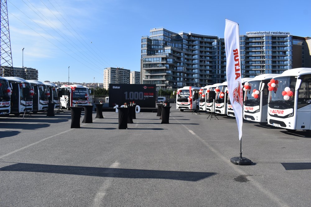 Altur Turizm, filosuna kattığı 1.000. Sultan otobüsünü, şirketin Yenibosna Merkez Garajı’nda düzenlenen törenle teslim aldı. Törene, Otokar Genel Müdürü Aykut Özüner, Otokar Ticari Araçlar Lideri Kerem Erman, Otokar Otobüs Grubu Yurt İçi Satış Direktörü Murat Torun, Yurtiçi Otobüs Satış Müdürü Sebahattin Yılmaz, Kurumsal İletişim Müdürü Beril Gönüllü, Otokar bayisi Atalay Otomotiv Yönetim Kurulu Başkanı İsmet Atalay, Yönetim Kurulu Üyesi Ali Rıza Atalay, Altur Turizm Yönetim Kurulu Başkanı Abdurrahim Albayrak ve her iki kurumun üst düzey yöneticileri katıldı.