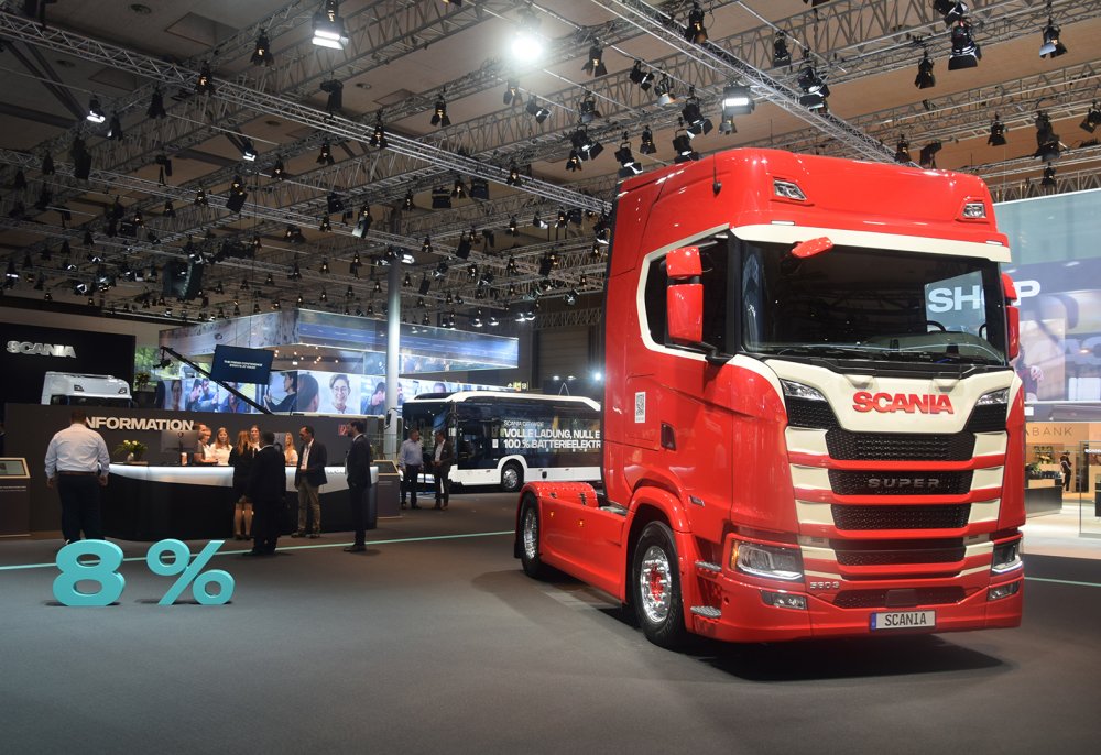 Scania, IAA Fuarı'nda sergilediği tüm araçlar ile sürdürülebilir ve dijital hizmetlerin bir arada sunulduğu çözüm odaklı yaklaşımını sergiliyor. IAA Fuarı'nda üç farklı alanda on dört farklı araç ile Scania, sürdürülebilirlik çözümlerini de gösterdi. Ayrıca, CO2 ayak izini azaltmaya ve aynı zamanda en iyi toplam işletme ekonomisine ulaşmaya kararlı müşterilerinin karşısına yakıt tasarrufunda iddialı modelleri ile çıktı. Scania'nın yakın zamanda piyasaya sürdüğü bölgesel taşımacılık için yeni seviye elektrikli kamyonları ilk kez sergilendi. IAA'da dünya prömiyerini yapan Scania, iki yeni güçlü (420 ve 460 hp) biyogaz kamyon motorunu da gösterdi.