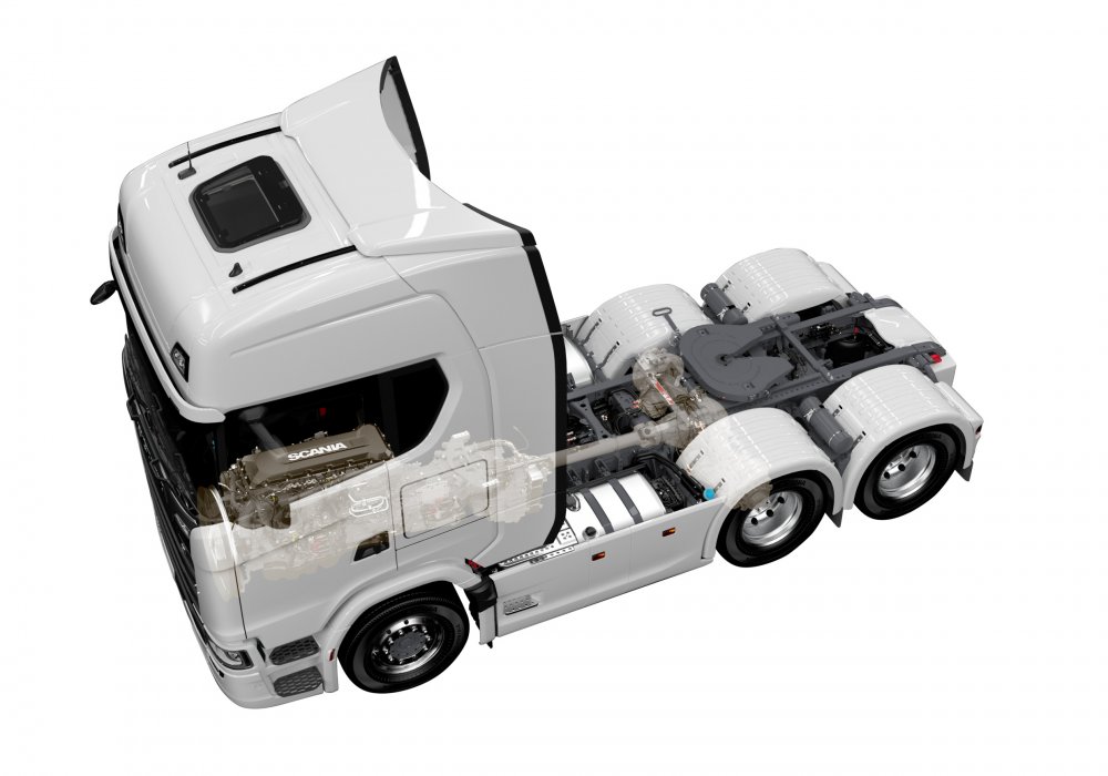Bu araç için tamamen Scania içinde tasarlanan ve İsveç mühendislik kalitesini yansıtan şasi, şanzıman, diferansiyel, D formlu yakıt deposu, daha yüksek frenleme torklu retarder ve motor ile SUPER farkını ortaya koyuyor. SUPER, emisyon normlarına uyumu sadece SCR kullanarak gerçekleştiriyor. Yeni 13 litrelik motorlar, en yeni Opticruise G33 şanzımanla birleştirildi. Bu, sürücünün, hızlı vites değişimi ve kesintisiz torkla benzersiz bir sürüş deneyimi ve sürüş konforu yaşarken, her koşulda en iyi yakıt ekonomisini elde edeceği anlamına geliyor.