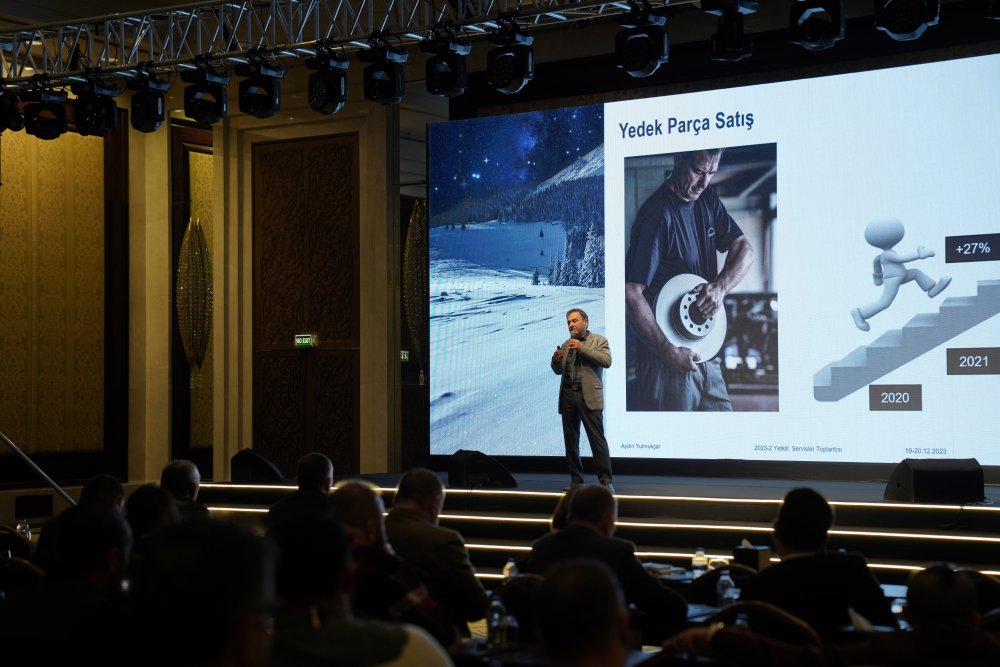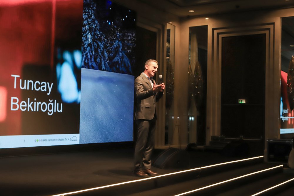 Toplantıda konuşan MAN Kamyon ve Otobüs Ticaret A.Ş. Müşteri Hizmetleri Direktörü Aydın Yumrukçal, yıla ilişkin genel değerlendirmelerde bulundu ve şunları söyledi: “2023 yılı, pek çok açıdan zorlu bir yıl oldu. %25 oranında büyüme gösteren pazarda hem rekabet hem de müşteri ilişkileri açısından yoğun bir süreci yaşadık. Bu nedenle 2023 yılında müşteri memnuniyetini sağlamak önceki senelere göre daha zorlu oldu. Ancak bu yılı hep birlikte başarıyla geride bıraktık. Şimdi önümüzdeki yıla bakıyoruz. Ancak gelişen ekonomik koşullar 2024 yılının daha da çetin geçeceğini gösteriyor. Dolayısıyla çok daha iyi hazırlanmamız gereken bir yıla giriyoruz. Bu sene gerçekleştirdiğimiz üstün performans ve müşteri odaklı hizmet anlayışımızı da 2024’ün bir ön hazırlık çalışması olarak görüp, yeni yılda da aynı çalışma azmi ile işimizi yapmaya devam edeceğiz