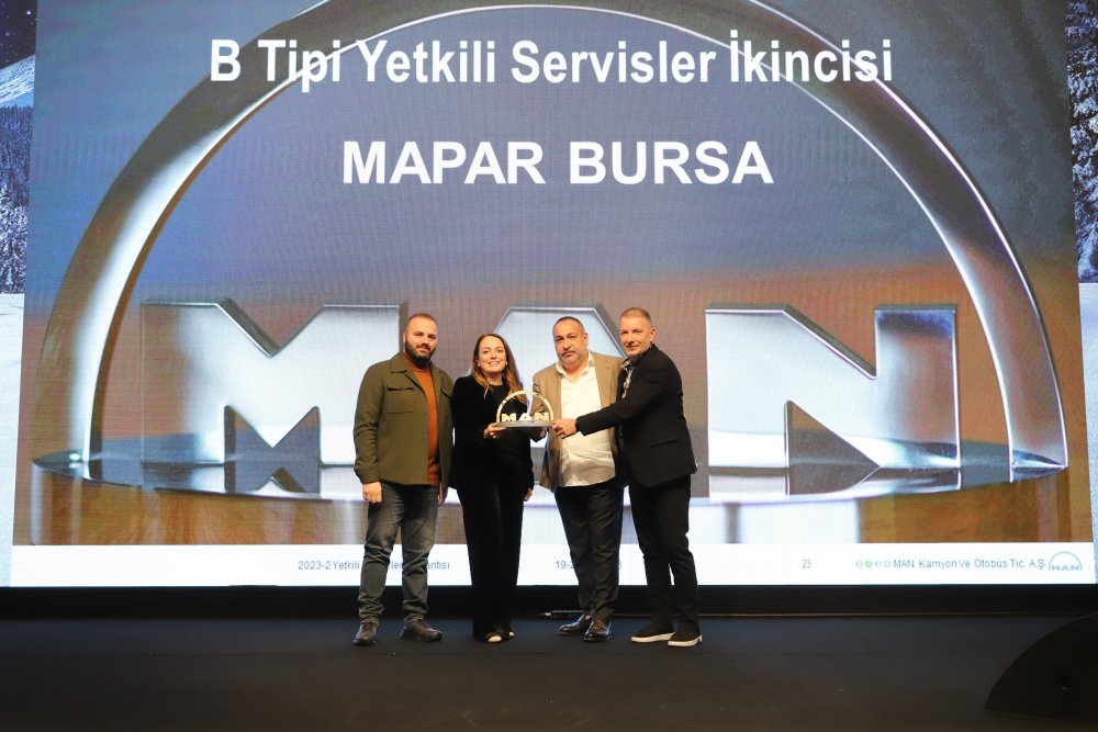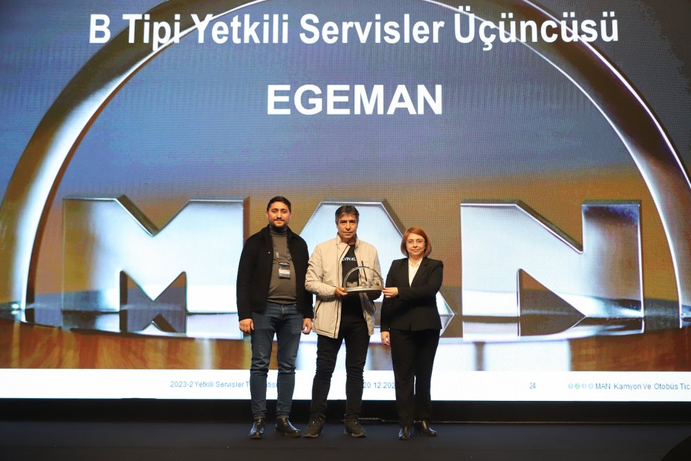 MAN Bayi ve Yetkili Servis temsilcilerinin de fikirleri ile katkı sağladıkları 2. Dönem Yetkili Servisler Toplantısı’nda, 2023 yılının ikinci yarısında yapılan MAN Servis Değerlendirme Geliştirme Programı denetimlerinin sonuçları da açıklandı. Müşteri memnuniyetini temel alan program kapsamında, 500’ü aşkın kriter üzerinden yapılan değerlendirmenin sonucunda ilk 3’e giren başarılı yetkili servislere düzenlenen özel bir törenle ödülleri verildi. Değerlendirmede, B Tipi Yetkili Servisler kategorisinde İzmir Avos Yetkili Servisi 1’inci sırayı alırken, MAN’ın Bursa servislerinden Mapar 2’inci, EGEMAN ise, 3’üncü sırada yer aldı. C Tipi Yetkili Servisler kategorisinde ise, Erzurum Doğu- Trans 1’inci oldu.