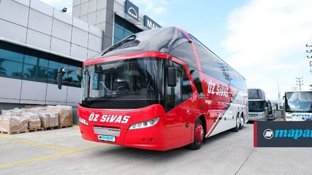 MAPAR Otomotiv 4 adet Neoplan Starliner otobüsün iç ve dış dizaynını tamamen yeniledi. Öz Sivas Turizm’e teslim etti. Hem 2 1 hem de 2 2 oturma düzeni seçenekleri ile dizayn edilen otobüsler Öz Sivas Turizm’in renklerine özel olarak boyandı.
