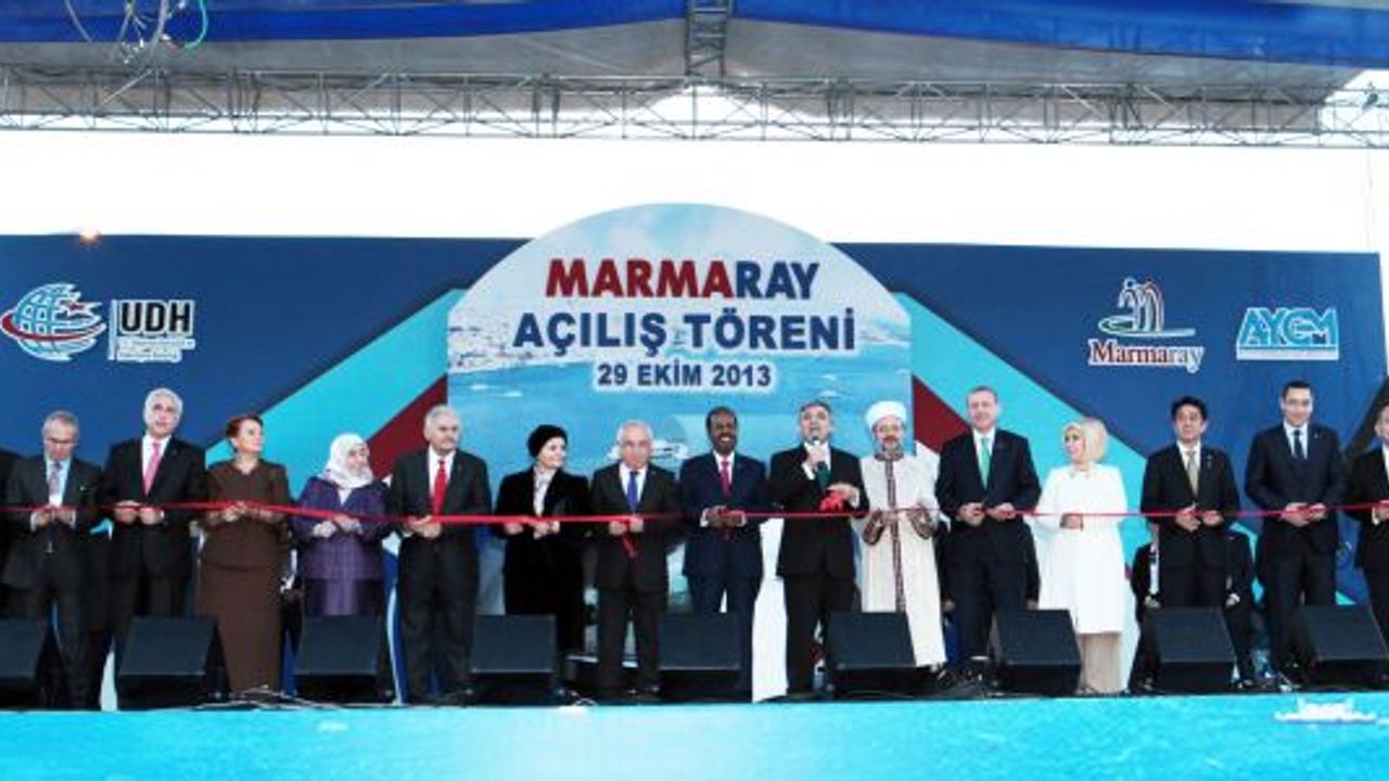 Konuşmaların ardından önce Diyanet İşleri Başkanı Mehmet Görmez Marmaray için dua etti sonra da törenin kurdele kesme kısmına geçildi. Bu sırada Cumhurbaşkanı Gül, İstanbulluların Marmaray’ı kullanmaya başlayacaklarını ifade ederek Başbakan Erdoğan’a, “Herhalde bir iyilik yapacaksınız!” dedi. Erdoğan da Marmaray projesinin 5 milyar doları bulan bir yatırım olduğunu belirterek vatandaşların 15 gün boyunca Marmaray’ı ücretsiz olarak kullanabileceklerini söyledi. Bu ‘pazarlığın’ ardından kurdele kesildi ve Üsküdar’dan ilk tren, törene katılan devlet erkanı ve yabancı konuklarla birlikte hareket etti.