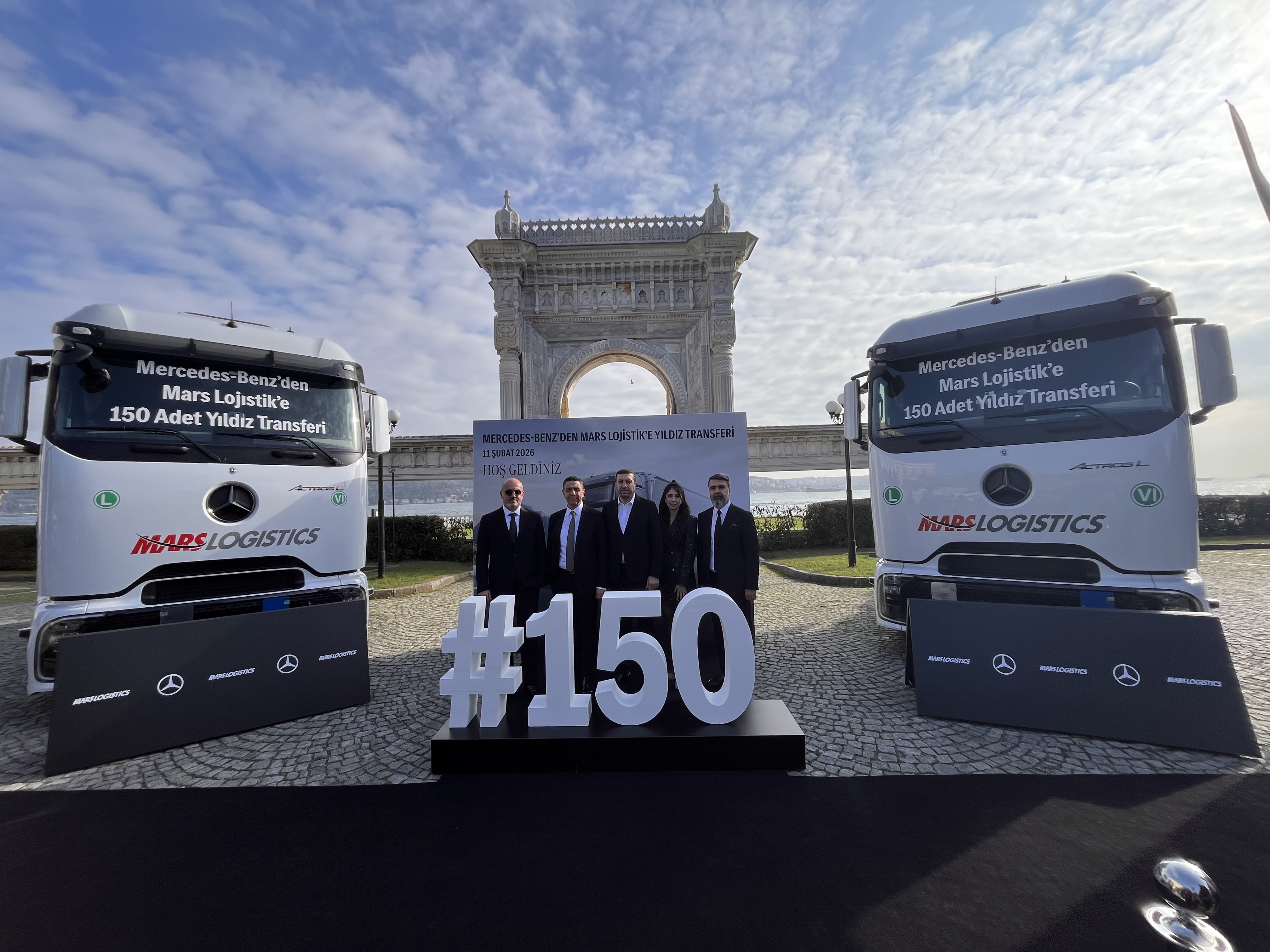 Teslimat töreni, Mercedes-Benz Türk İcra Kurulu Başkanı Süer Sülün, Mercedes-Benz Türk Kamyon Pazarlama ve Satış Direktörü Alper Kurt, 2. El Kamyon ve Otobüs Satış Direktörü Didem Daphne Özensel, Satış Sonrası Hizmetler Direktörü Tolga Bilgisu, Kamyon Filo Satış Grup Müdürü Çağdaş Özen, İletişim Müdürü Miray Demirel, Mercedes-Benz Kamyon Finansman CEO’su Gökmen Onbulak, Mars Logistics Yönetim Kurulu Başkanı Garip Sahillioğlu, Yönetim Kurulu Üyesi Gökşin Günhan, Filo Operasyonlarından Sorumlu Genel Müdür Yardımcısı Erkan Özyurt, Mars Logistics İş Geliştirme, Planlama ve Fiyatlandırmadan Sorumlu Genel Müdür Yardımcısı Önder Başboğa, Filo Yatırım ve Bakım Onarım Koordinatörü Kerem Karaduman, Kurumsal İletişim ve Marka Yönetimi Müdürü Kader Özal, Gelecek Otomotiv Yönetim Kurulu Başkanı Beşir Acar, Gelecek Otomotiv CEO’su Ebubekir Koman, Gelecek Otomotiv Diyarbakır Genel Müdürü Serdar Ulağ ve Gelecek Otomotiv Filo Satış Müdürü Yusuf Odabaş’ın katılımıyla Çırağan Sarayı’nda gerçekleştirildi.