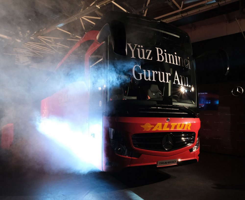 Mercedes-Benz Türk İcra Kurulu Başkanı Süer Sülün de şu ifadeleri kullandı: "55 yıllık şirket tarihimizin 46 yılında Altur Turizm ile çok değerli iş birliklerine imza attık. Geçtiğimiz günlerde 100 bininci otobüsümüzü banttan indirmemizin gururunu ve mutluluğunu sizlerle paylaşmıştık. Bugün ise aracımızı asıl sahibi olan Altur Turizm’e teslim ediyoruz. Bu teslimatla 46 yıllık iş birliğimize çok önemli bir dönüm noktası daha ekliyoruz. Bu özel otobüsümüzün kendilerine hayırlı olmasını diliyorum."