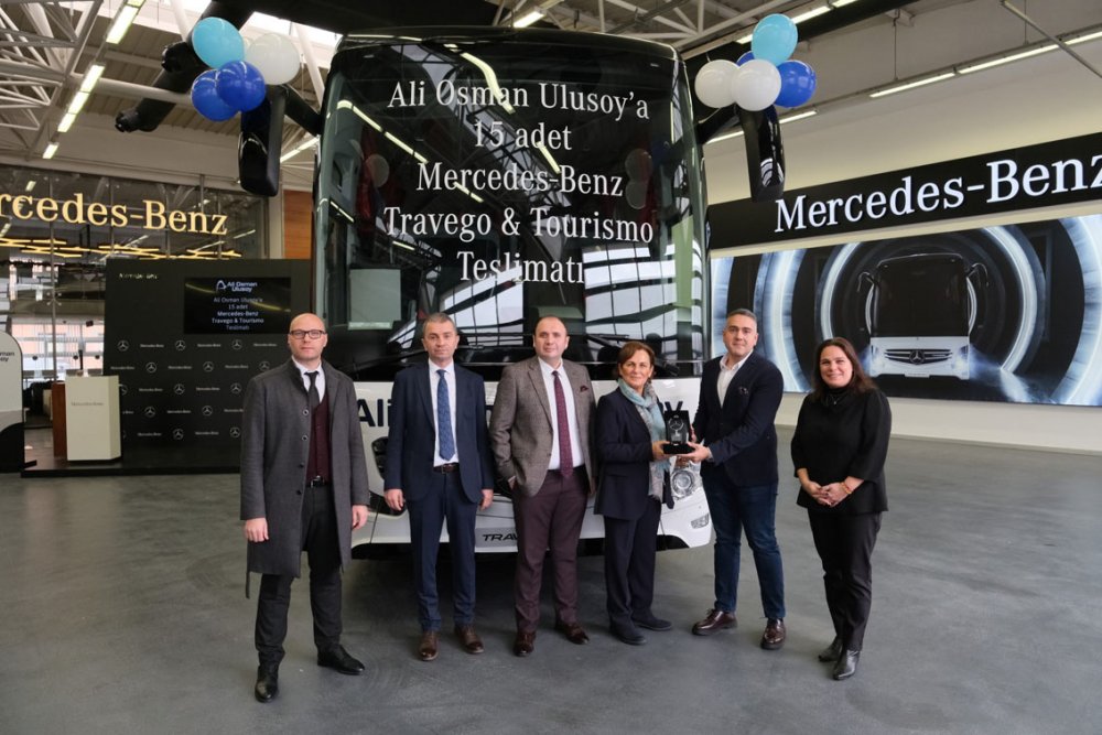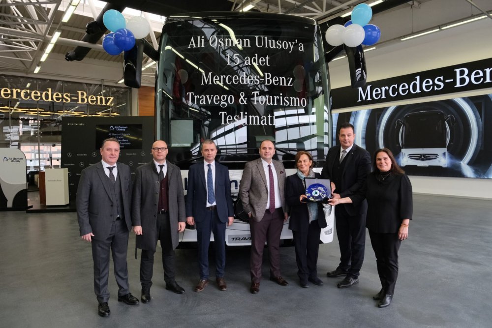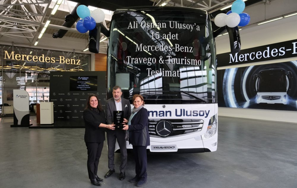 Mercedes-Benz Kamyon Finansman’ın kredi desteğiyle Mercedes-Benz Türk bayisi Hassoy tarafından yapılan satış, 15. otobüs olan Mercedes-Benz Travego 16 2+1'in teslimatıyla tamamlandı. Mercedes-Benz Türk Otobüs Teslimat Holü’nde gerçekleştirilen törene; Ali Osman Ulusoy Şirketler Grubu Yönetim Kurulu Başkanı Hülya Ulusoy, Ali Osman Ulusoy Şirketler Grubu Yönetim Kurulu Başkan Yardımcısı Ahsen Aydın, Ali Osman Ulusoy Şirketler Grubu Yönetim Kurulu Başkan Yardımcısı Gülşah Helva, Ali Osman Ulusoy Şirketler Grup Başkanı Murat Seymen, Ali Osman Ulusoy Turizm Genel Müdürü Eray Eray, Mercedes-Benz Türk Otobüs Satış ve Pazarlama Direktörü Osman Nuri Aksoy, Mercedes-Benz Türk Otobüs Filo Satış Grup Müdürü Burak Batumlu, Hassoy Motorlu Vasıtalar Genel Müdürü Selim Saral ve Hassoy Motorlu Vasıtalar Otobüs Satış Müdürü Cenk Soydan katıldı.