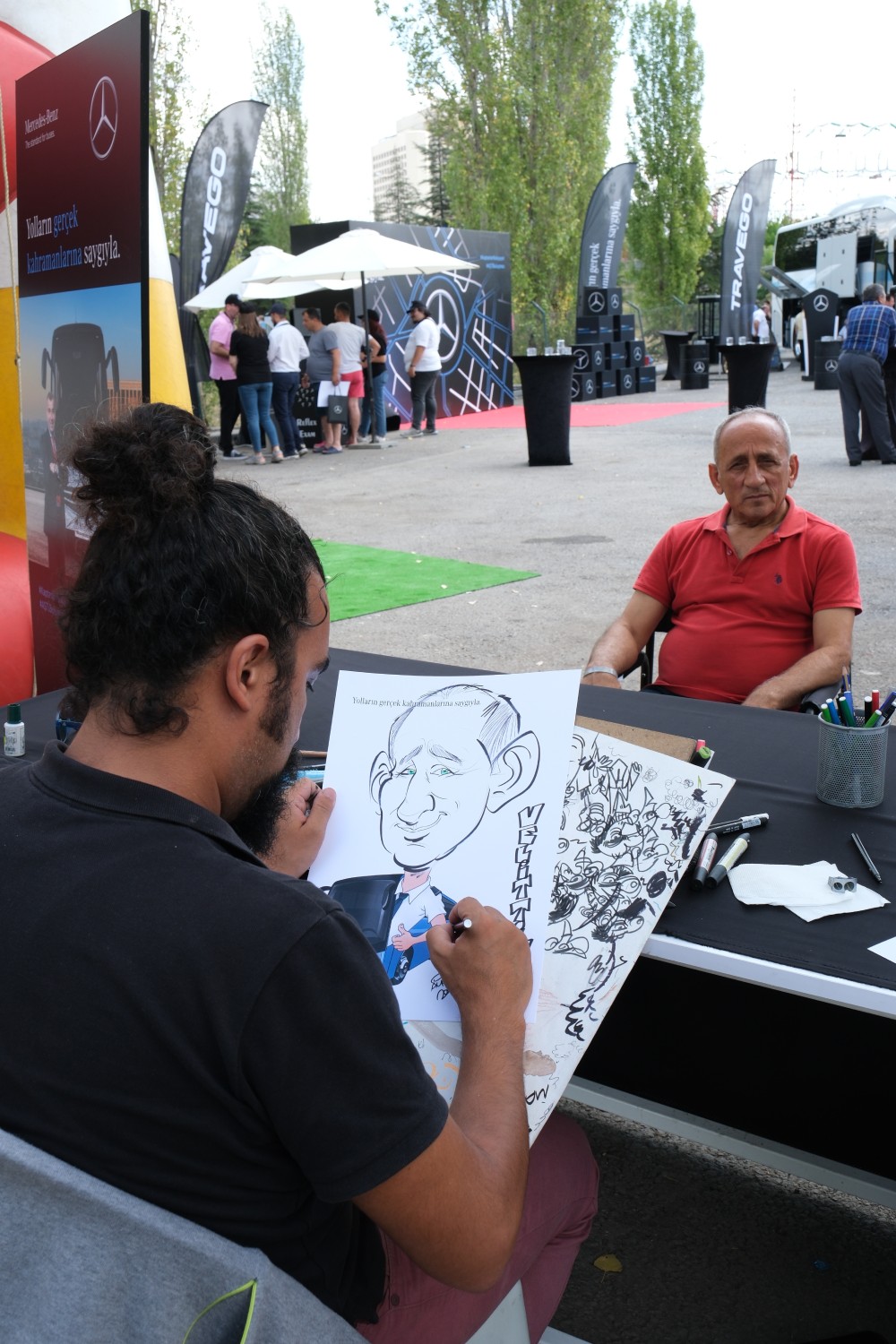 Otobüs kaptanlarının ödüllü oyun ve yarışmalarla eğlenceli bir gün geçirdiği etkinlik kapsamında; otobüs önünde karikatür çizimi ve etkinlik gününe özel fotoğraf panosunda hatıra fotoğrafı çekimi yapılırken, isme özel Mercedes-Benz forması gibi çeşitli hediyeler de verildi.