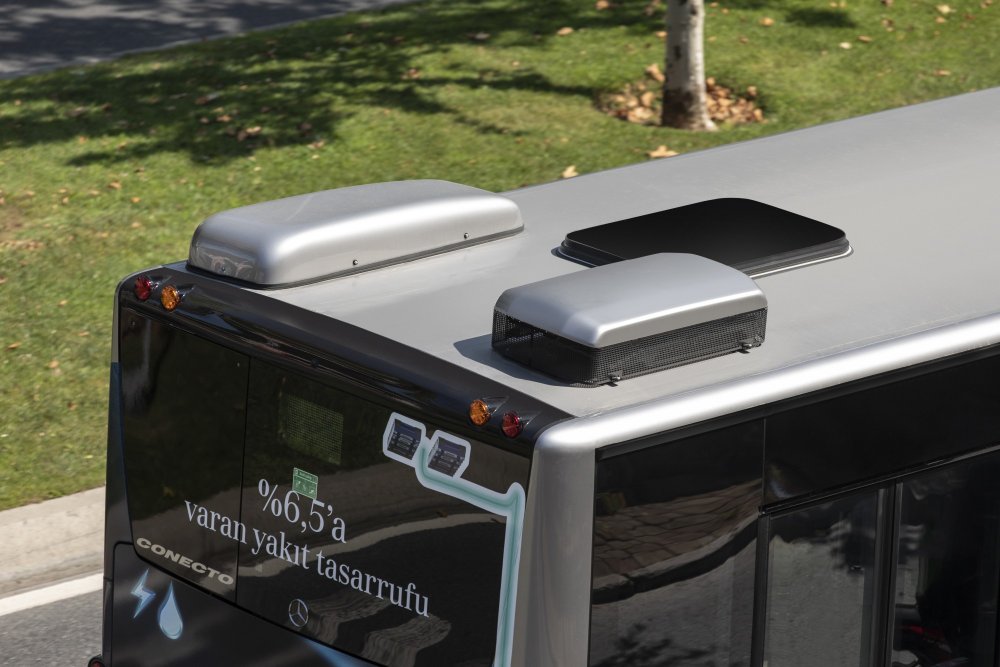 Euro 6 dizel motora sahip versiyonlara göre yüzde 6,5’e varan yakıt tasarrufu sağlayan Mercedes-Benz Conecto hybrid, emisyon değerlerini önemli oranda düşürerek çevreye daha az karbon salınmasını sağlayacak.