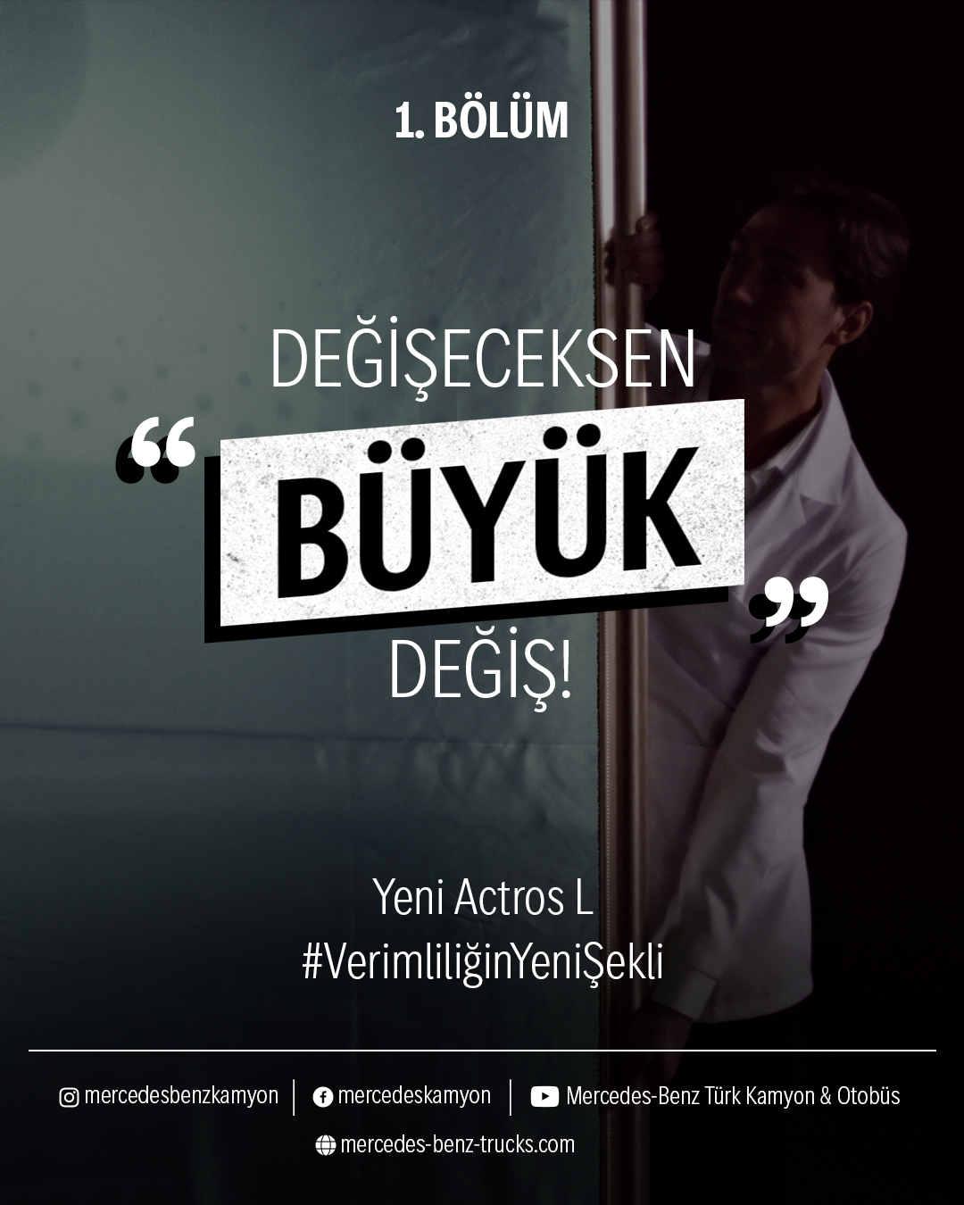 Ağır ticari araç endüstrisinin öncü markası Mercedes-Benz Türk, iletişim çalışmalarına güçlü bir içerikle devam ediyor. Yeni nesil aracı Mercedes-Benz Actros L için hazırlanan bu üç bölümlük reklam filmi serisi, “değişim” temasını işleyerek izleyiciye hem araçtaki dönüşümü hem de bu değişimin kullanıcı ve çevresindeki etkilerini aktarıyor. Her bir film, Mercedes-Benz Türk’ün vizyonunu, kullanıcı deneyimine verdiği önemi ve sektörel dönüşüme olan cesaretini yansıtan güçlü bir anlatı sunuyor.