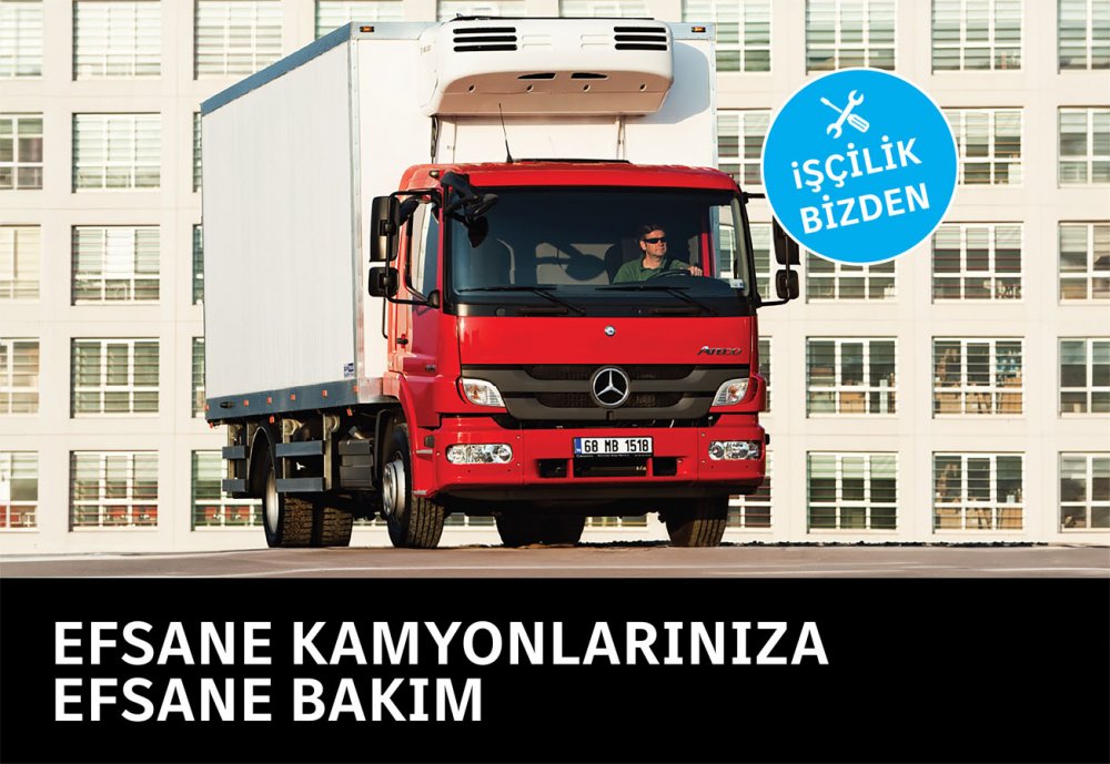 Mercedes-Benz Türk’ün yeni başlattığı ve 30 Nisan’a kadar geçerli olan “Efsane Kamyonlarınıza Efsane Bakım!” Kampanyası kapsamında da Euro 5 motora sahip Mercedes-Benz Axor, Actros ve Atego araçlarda motor ve zaman bakımı seçeneklerinde cazip yedek parça fiyatları ile birlikte ücretsiz işçilik sunuluyor.