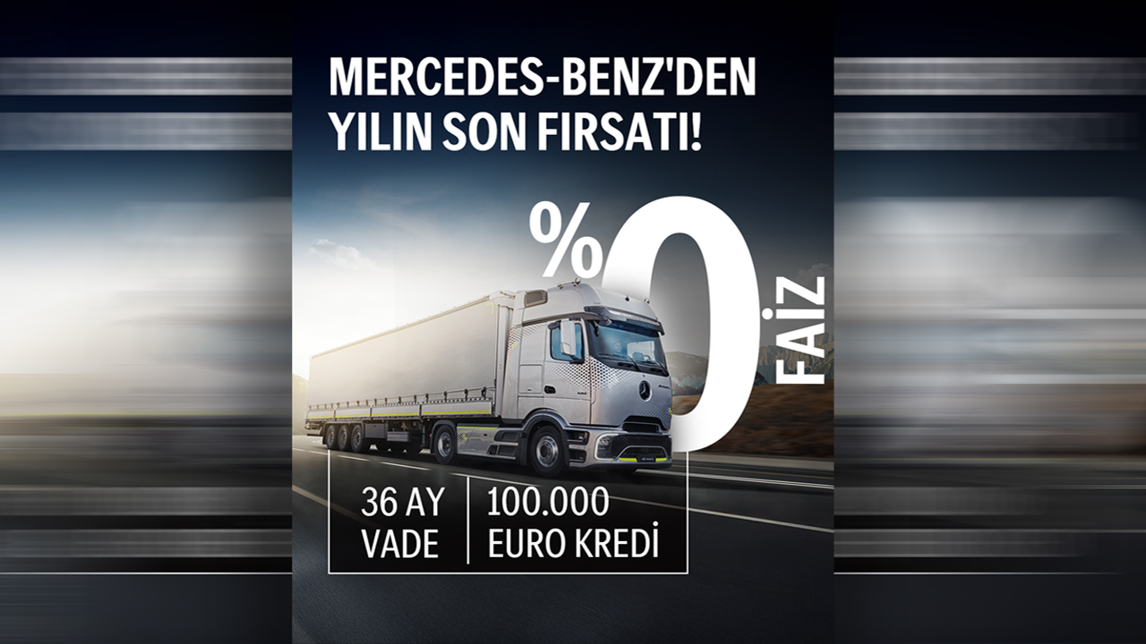 Kasım ayı boyunca geçerli diğer özel fırsatlar kapsamında, Mercedes-Benz Actros L modelinde 3.5 milyon TL kredi kullanımlarında 24 ay vadede yüzde 1,15 faiz oranı uygulanıyor. Mercedes-Benz Atego modeli için ise 2.5 milyon TL kredi kullanımlarında 24 ay vadede yüzde 2,17 faiz oranı sunuluyor. Katı atık segmentindeki araçlarda ise 2.5 milyon TL kredi tutarına 24 ay vadede yüzde 2,57 faiz oranı imkânı bulunuyor.