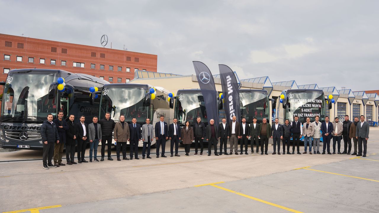 Mercedes-Benz Türk, şehirlerarası yolcu taşımacılığında güçlü iş ortaklarıyla iş birliklerini büyütmeye devam ediyor. Bu kapsamda, bölgenin köklü taşımacılık firmalarından Özlem Cizre Nuh’a 3 adet Mercedes-Benz Travego 16 2+1 ve 2 adet Mercedes-Benz Tourismo 16 2+1 model otobüs teslim edildi. Hoşdere Otobüs Fabrikası’nda üretilen yeni araçlarla birlikte firmanın Mercedes-Benz marka otobüs sayısı 39’a ulaştı. Teslimat töreni, Mercedes-Benz Türk, Özlem Cizre Nuh ve Koluman Gaziantep yöneticilerinin katılımıyla Mercedes-Benz Türk Pazarlama Merkezi’nde gerçekleştirildi.