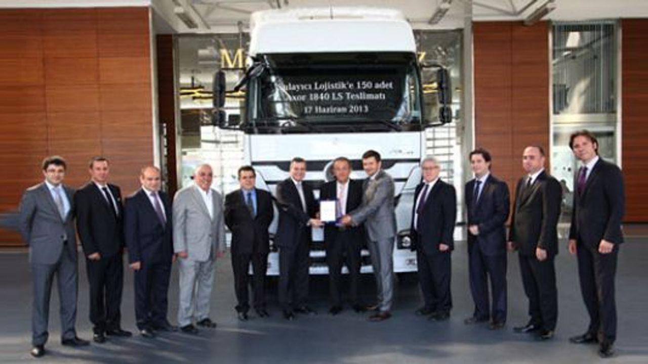 150 adet Mercedes-Benz Axor aracın Halil Sulayıcı’ya teslim edildiği törende konuşma yapan Bahadır Özbayır, “Bugün burada Sulayıcı Lojistik ile yeniden bir araya geldiğimiz için büyük mutluluk duyuyoruz. 54 yıldır lojistik sektöründe hizmet veren ve filosunun tamamı Mercedes-Benz marka araçlardan oluşan Sulayıcı Lojistik’in yeniden Mercedes-Benz’i tercih etmesi, müşterilerimize sağladığımız satış, satış sonrası, yedek parça hizmetlerimizle yakaladığımız yüksek performans ve kalitenin bir kanıtıdır. Sulayıcı Lojistik’e yeni araçları ile sektörde yükselen başarılarının devamını dilerim” dedi.