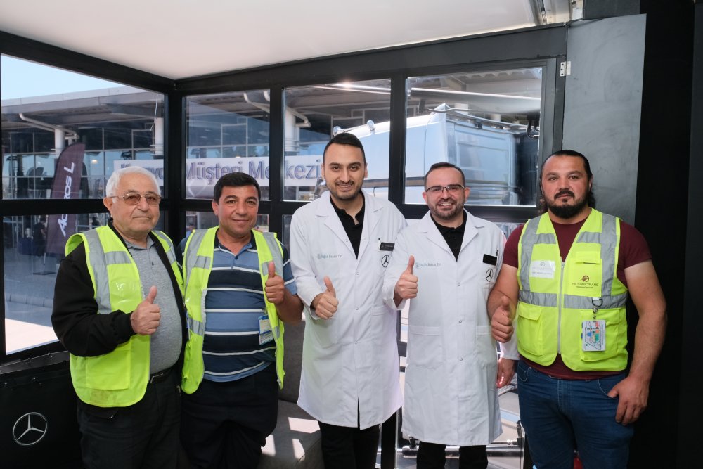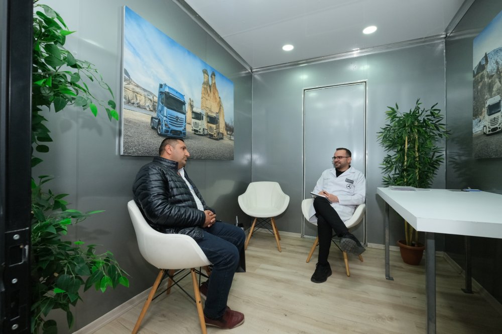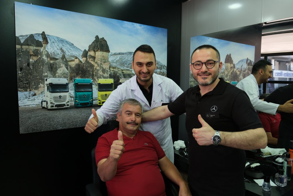 Kamyon şoförlerinin ihtiyaçlarını en iyi şekilde karşılayabilmesi için özel olarak tasarlanan dorsesiyle Actros L 1851 LS model Sağlık Bakım Tırı’nda şoförlerin ön muayenesini gerçekleştiren iç hastalıkları uzmanı, gerekli gördüğü kişileri tedavi olmaları için sağlık kuruluşlarına yönlendirdi. Fizyoterapistin uzun yol şoförlerine araç içinde yapabilecekleri hareketleri ve doğru oturma pozisyonlarını anlattığı etkinlikte, Sağlık Bakım Tırı’nda bulunan berberler de şoförlerin saç ve sakal bakımlarını gerçekleştirdi. Gelen istek üzerine 2023’te ekibe dahil edilen psikolog şoförlere destek verdi. Bu yılın yenilikleri arasında eğitim de yer aldı. Aksaray Fabrikası’nda bulunan Sağlık Bakım Tırı‘na gelen şoförlere, uzmanlar tarafından eğitim verildi. Yaşamlarının büyük bir bölümünü yollarda geçiren şoförlerin sağlık ve konforuna katkıda bulunmayı amaçlayan Mercedes-Benz Türk’ün Sağlık Bakım Tırı, en yoğun olarak kullanılan hatlarda konumlandırılıyor. Sağlık Bakım Tırı hizmetlerinden, etkinlik alanlarında mola veren tüm kamyon şoförleri faydalanabiliyor.