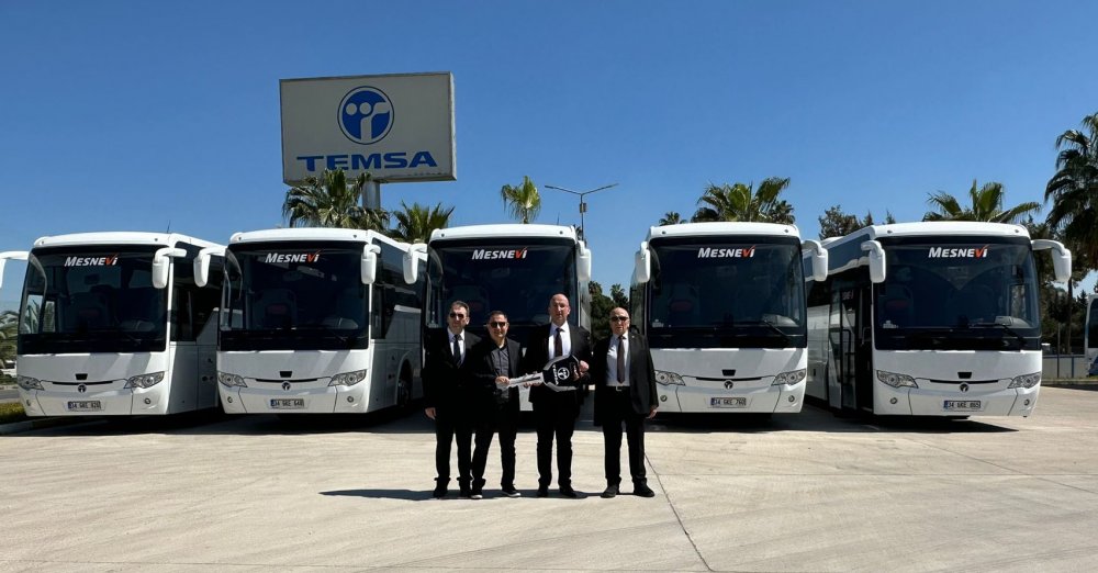 Mesnevi Turizm TEMSA’nın Adana’daki merkezinde düzenlenen törenle 9 araçlık Temsa Safir yatırımının ilk 5 adetini teslim aldı. Araçları TEMSA Otobüs Bölge Satış Yöneticisi İlker Canbolat, Mesnevi Turizm Yönetim Kurulu Başkanı Ünal Öztürk, Yönetim Kurulu Üyeleri Mustafa Öztürk, Fatih Öztürk’e teslim etti. Kalan 4 araç Nisan ayı içinde teslim edilecek.