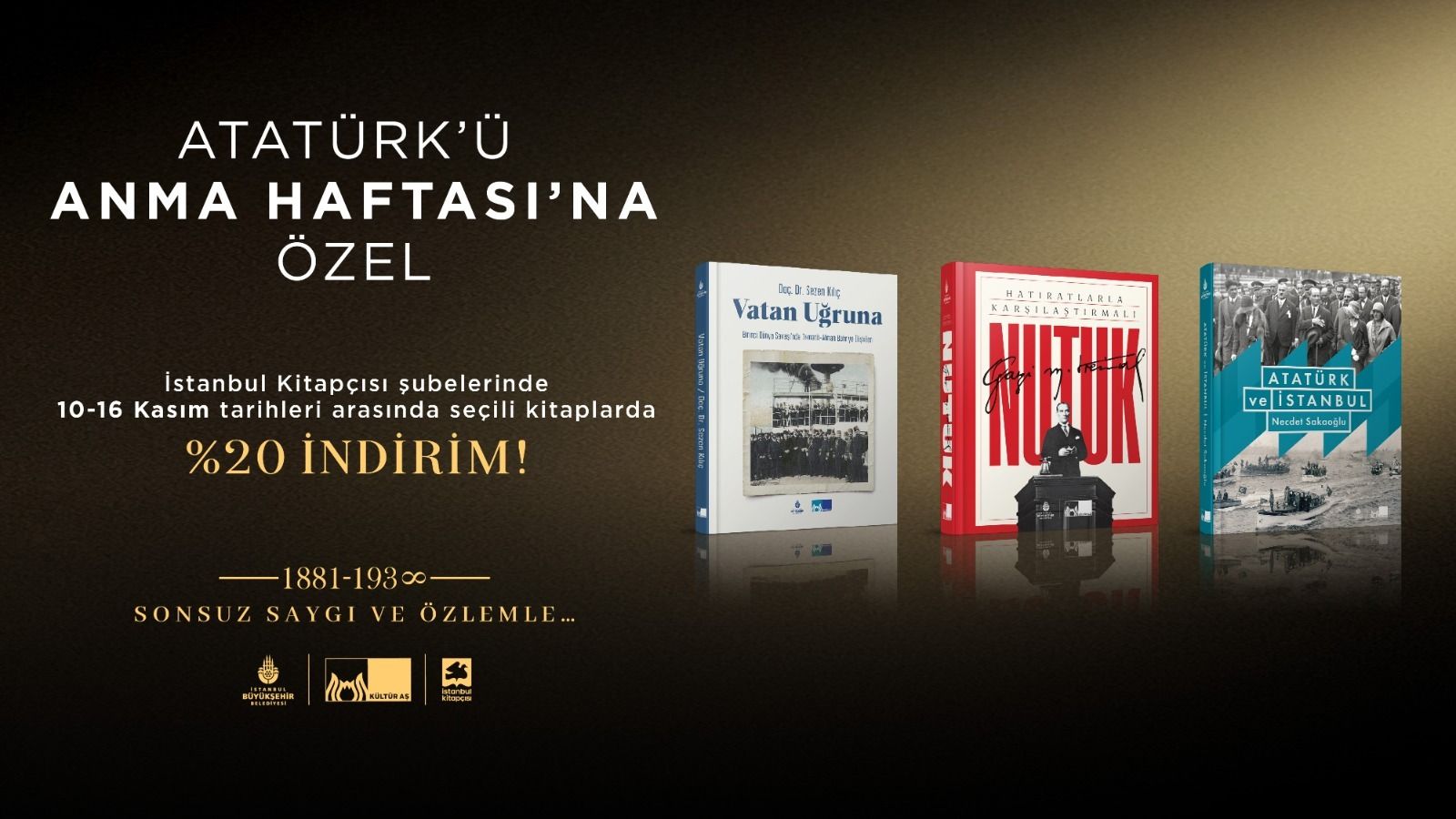 Kültür A.Ş. tarafından işletilen İstanbul Kitapçısı, 10–16 Kasım tarihleri arasında seçili Atatürk temalı kitaplarda %20 indirim uygulayacak. Atatürk’ün düşünce dünyasını ve Cumhuriyet’in değerlerini yeniden hatırlatmayı amaçlayan kampanya, kent genelindeki tüm İstanbul Kitapçısı şubelerinde geçerli olacak.