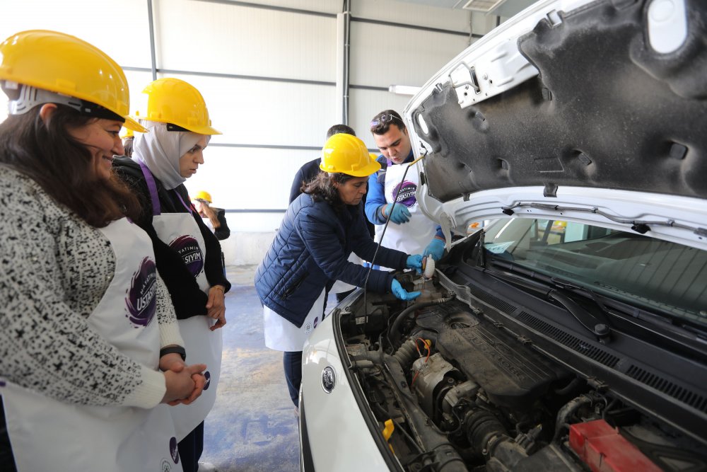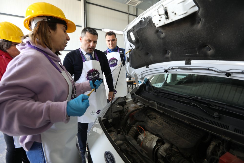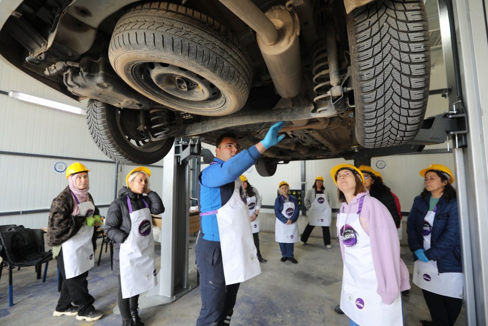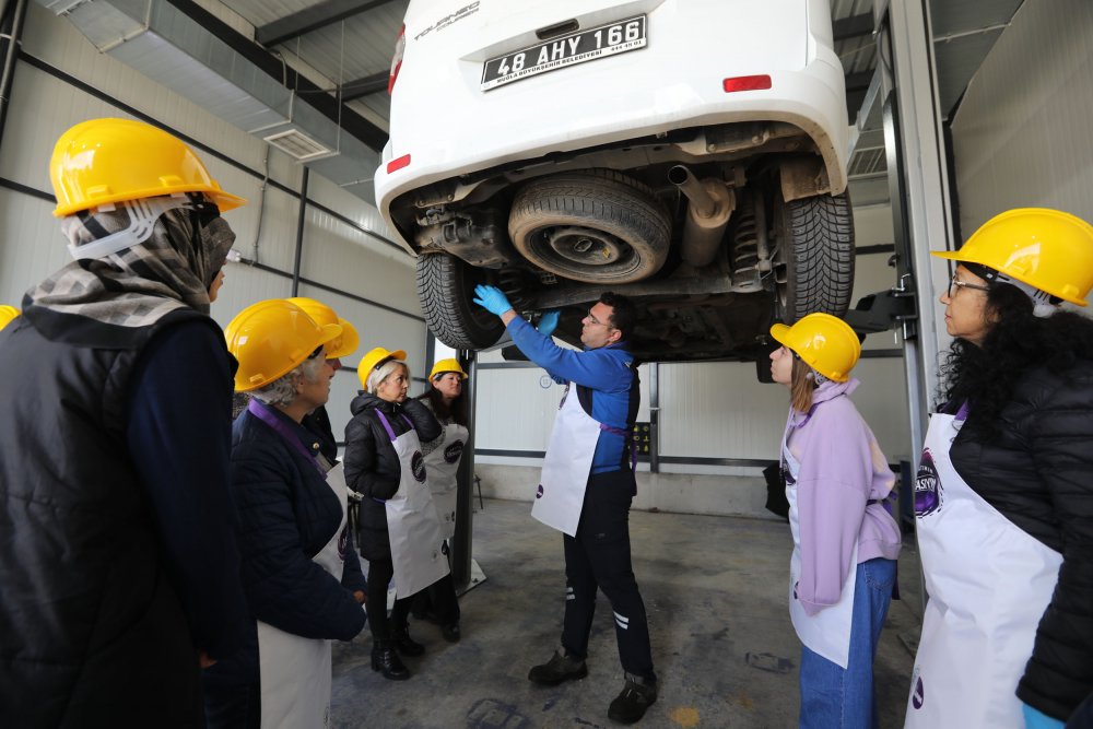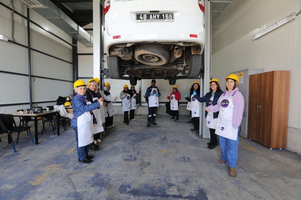 Kadınların teknik beceriler kazanarak günlük yaşamlarında daha bağımsız olmalarını destekleyen Muğla Büyükşehir Belediyesi, ilk etapta temel el aletleri kullanımı ve tamirat konularında eğitim verdiği kadınlara, şimdi de araç bakımı üzerine uygulamalı eğitimler sunuyor.