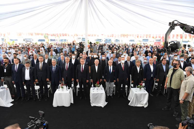 CHP Lideri Kılıçdaroğlu’nun öncülüğünde Mersin Büyükşehir Belediyesi Tır Garajı’nda düzenlenen Büyük Nakliyeci Buluşması’na, CHP Genel Başkan Yardımcıları, Genel Merkez yöneticileri, Parti Meclisi üyeleri, milletvekilleri, Mersin Büyükşehir Belediye Başkanı Vahap Seçer, Adana Büyükşehir Belediye Başkanı Zeydan Karalar, siyasi partilerin il ve ilçe örgütleri, sivil toplum kuruluşları ve sektör temsilcileri katıldı.