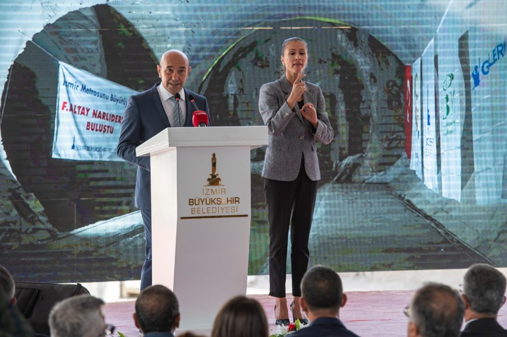 Törende konuşan İzmir Büyükşehir Belediye Başkanı Tunç Soyer, göreve geldiğinde inşaatının yüzde 12’si tamamlanmış durumda olan Fahrettin Altay -Narlıdere Metro Hattı’nda büyük bir hızla yol aldıklarına dikkat çekerek, “Mart 2019’da çıktığımız hizmet yolunda, bugün çok önemli bir kilometre taşını geride bıraktık. Bugün itibariyle çift yönlü toplam 14,5 kilometrelik tünel açma işinin sonuna geldik. Az sonra, tünel kazma makinesi TBM’in son tüneli de ışığa kavuşturmasıyla, Narlıdere metro inşaatının yüzde 82’si tamamlanmış olacak. Metro inşaatımızda aynı zamanda istasyon yapılarının yüzde 35’i, demiryolu işlerinin ise yüzde 23’ü tamamlandı. Yaklaşık 3 bin 300 metrelik ray döşendi. Yüklenici firmamız Gülermak’a çalışmaları nedeniyle teşekkür ediyorum. İnşallah Cumhuriyetimizin 100’üncü yılında Fahrettin Altay Narlıdere Metro Hattımızı hemşehrilerimizin hizmetine sunacağız” dedi.