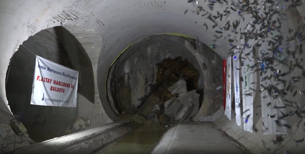 İzmir’de toplu ulaşımı çağdaş standartlara taşıma hedefi doğrultusunda İzmir Büyükşehir Belediyesi’nin raylı sistem yatırımları son hızıyla sürüyor. İzmir Büyükşehir Belediye Başkanı Tunç Soyer’in görevi devraldığında yüzde 12 seviyesinde olan Fahrettin Altay-Narlıdere Metro hattında inşaat çalışmalarının yüzde 82’si tamamlanırken 14,5 kilometrelik ikinci ve son tünel de bugün Fahrettin Altay’dan Narlıdere’ye ulaştı. Tünel açma makinesinin son tüneli ışığa kavuşturduğu tarihi an Narlıdere Kaymakamlık İstasyonu’nda düzenlenen törenle ekranlara yansıdı.