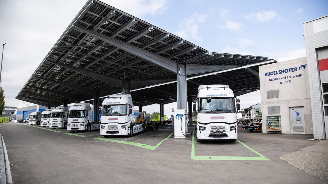 Hugelshofer’in Renault Trucks E-Tech T araçlarının performansı, büyük ölçüde optimize edilmiş bir şarj altyapısına dayanıyor. Taşımacının Frauenfeld tesisinde, maksimum 480 kW güce sahip 30 hızlı şarj istasyonu bulunuyor ve bu altyapı sayesinde günde 100 kamyona kadar şarj gerçekleştirilebiliyor.