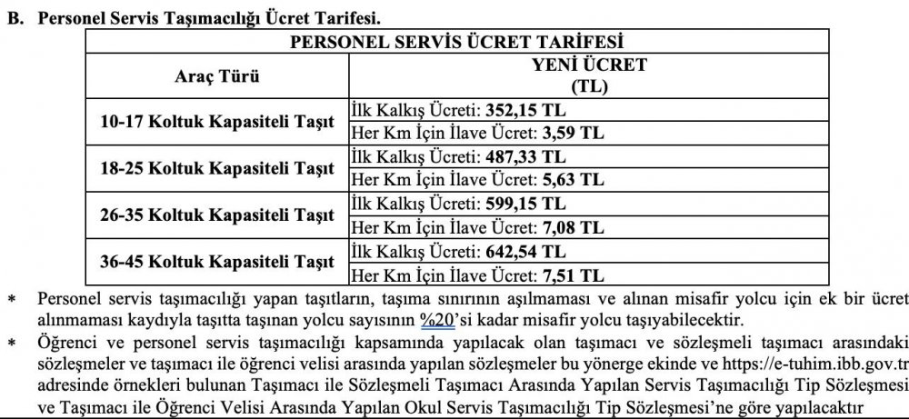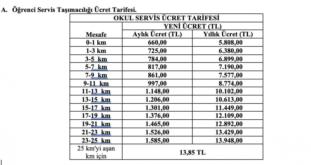 UKOME toplantısında alınan kararla yüzde 19.21 zam ile servis ücretleri bu şekilde oluştu