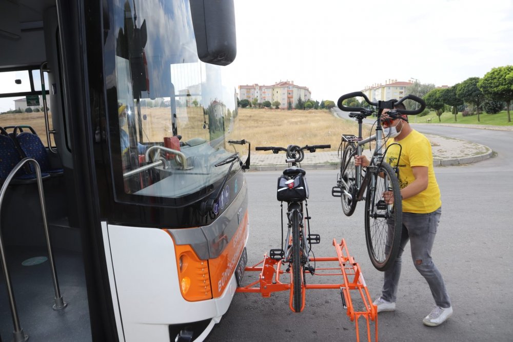 Geçtiğimiz günlerde 6 otoparkını bisikletlilere ücretsiz park konusunda açan Büyükşehir Belediyesi, şimdi de belediye otobüslerinde bisiklet ile ulaşım dönemini başlattı. Uygulama kapsamında Vadişehir-Otogar hattında seferler gerçekleştiren Siyah 63 numaralı otobüslerin ön bölümlerine bisiklet aparatları takıldı. Aparatlar sayesinde bisikletleri ile herhangi bir ilave ücret ödemeden otobüsle ulaşım gerçekleştirebilen bisiklet sürücüleri, uygulamadan büyük mutluluk duyduklarını ifade ettiler.