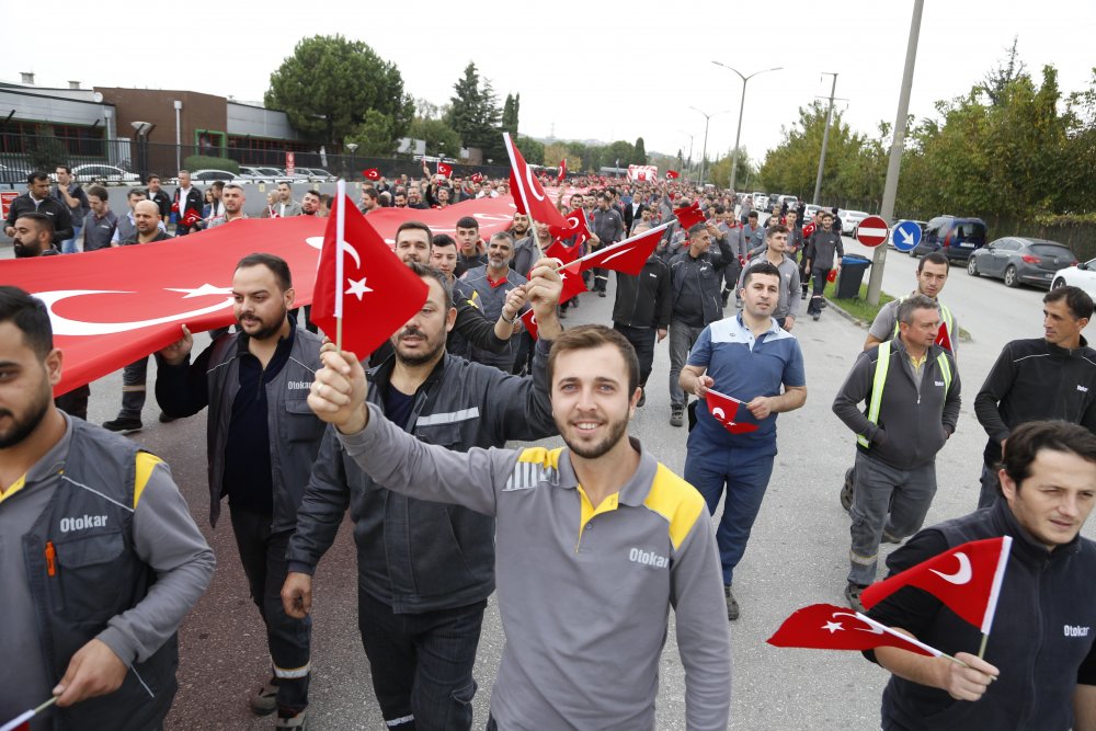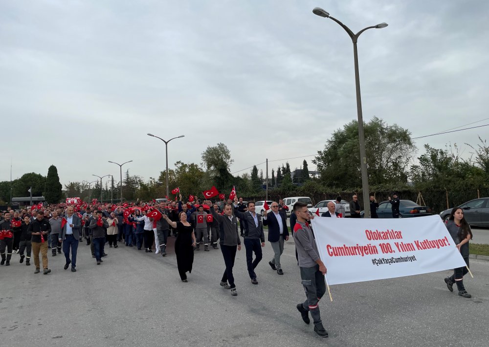 Türkiye Cumhuriyeti'nin kurucusu Gazi Mustafa Kemal Atatürk, silah arkadaşları, tüm şehitler için saygı duruşu ve İstiklal Marşı'nın okunmasının ardından Otokar çalışanları, 100 metrelik bayrak açarak Türkiye'nin bağımsızlık ve özgürlük mücadelesinin zaferini coşkuyla kutlamak amacıyla Cumhuriyet Yürüyüşü’nü gerçekleştirdi. Korteje bando takımının yanı sıra dünyanın dört bir yanında kullanılan Türk mühendisliği ve işçiliğinin ürünü olan Otokar araçları eşlik etti.