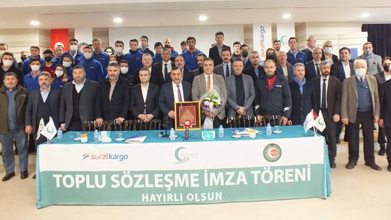 Üsküdar Belediyesi Nikah Dairesi'nde gerçekleştirilen törende konuşan Hak-İş Genel Başkan Yardımcısı Osman Yıldız ise toplu iş sözleşmesinin Regaip Kandiline ve mübarek üç ayların bereketi ve bereketine denk gelmesinin iyi bir tesadüf olduğunu belirterek, "Birçok değerli meslek çalışanları gibi pandemi sürecinde kargo çalışanları da hayatları pahasına insanlarımıza çok önemli hizmetler sundu. Birçok insana sadece eşya değil sağlık için ilaç gibi en önemli şeyleri vatandaşlarımıza sundu. Bizim için kalite, iş barışı, sağlık çok önemli. Ekmek, barış, özgürlük.. Bunlardan birisi olmazsa diğerlerinin bir anlamı olmaz. Bunun için sendikal hareketler çok önemli çalışanlarımız ve hepimiz için çok önemli. Hak iş olarak çok önemli bir misyonu üstlendik. Hak iş olarak örgütlülüğün lideri olarak çalışanlarımıza bu önemli hakları buluşturmamız gerekir." diye konuştu.