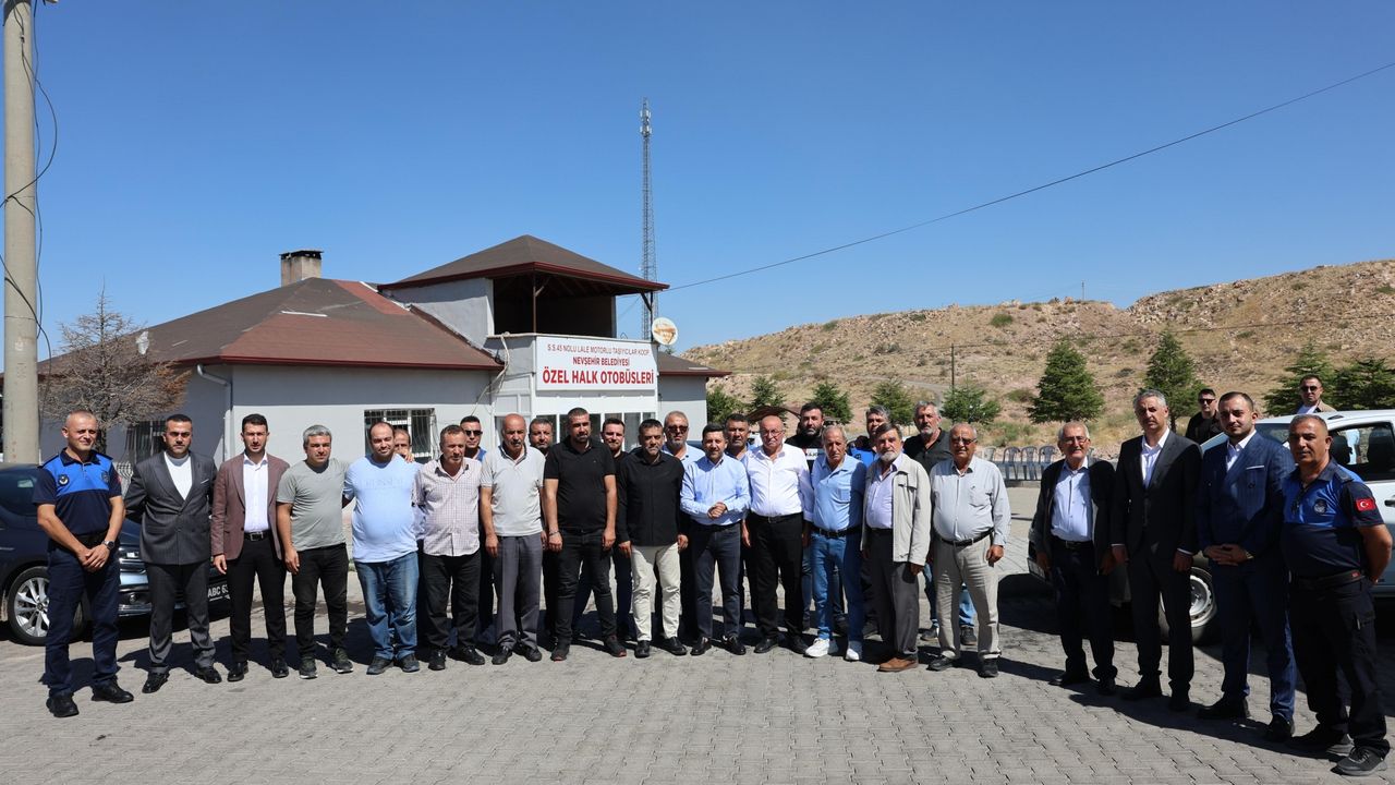 İçerisinde Nevşehir Belediye Başkan Yardımcısı İbrahim Yüzer ile Nevşehir Şoförler Otomobilciler ve Nakliyeciler Esnaf Odası Başkan Cemal Ulukuş’un bulunduğu sohbet sonrası Nevşehir Başkanı Rasim Arı, heyet ile birlikte durakta bulunan özel halk otobüsünü yerinde denetledi.