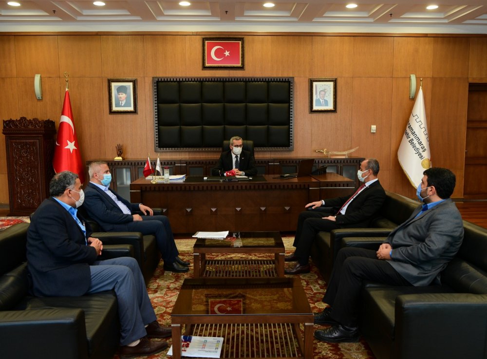 Kahramanmaraş Büyükşehir Belediye Başkanı Hayrettin Güngör, Kahramanmaraş Minibüsçüler ve Özel Halk Otobüsçüleri Odası Başkanı Mustafa Baltacı ve yönetim kurulu üyelerini makamında ağırladı. Pandemi sürecinin getirdiği kısıtlılıklara rağmen fedakarca çalışma yürüten esnafa teşekkür eden Büyükşehir Belediye Başkanı Hayrettin Güngör, “Ben öncelikle oda başkanımızın nezdinde, tüm esnafımıza ve şoförlerimize yürekten teşekkür ediyorum. Pandemi süreci çerçevesinde, toplu taşımayı hiç aksatmadan eksiksiz olarak yerine getirdiler” diye konuştu.