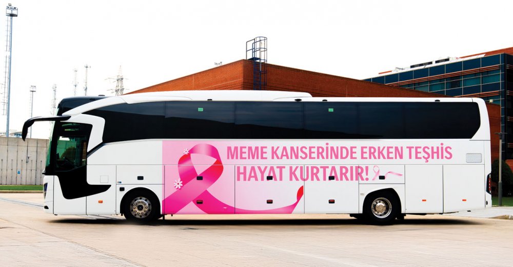 - Uzmanlara göre 20- 39 yaşları arasında her ay kendi kendini muayene ve 1-3 yıl ara ile bir defa uzman hekime muayene olmaları öneriliyor. 40 yaş üstünde ise her ay kendini muayeneye ek olarak her yıl uzman bir hekime muayene olunması ve her yıl mamografi çektirilmesi öneriliyor. Çıkış noktamız aslında öncelikli olarak bu kontroller ile ilgili toplumda farkındalık uyandırmaktı. 2022 yılında Mercedes-Benz Türk olarak Best Van’a teslim etmiş olduğumuz Mercedes-Benz Travego 16 2+1 otobüsümüzü “Erken Teşhis Hayat Kurtarır” sloganıyla ve meme kanseri farkındalığına dikkat çeken pembe tasarımıyla giydirdik. 2023 yılında da bu tasarımı “Meme Kanseriyle Mücadelede Yolumuz Bir” sloganıyla güncelledik.