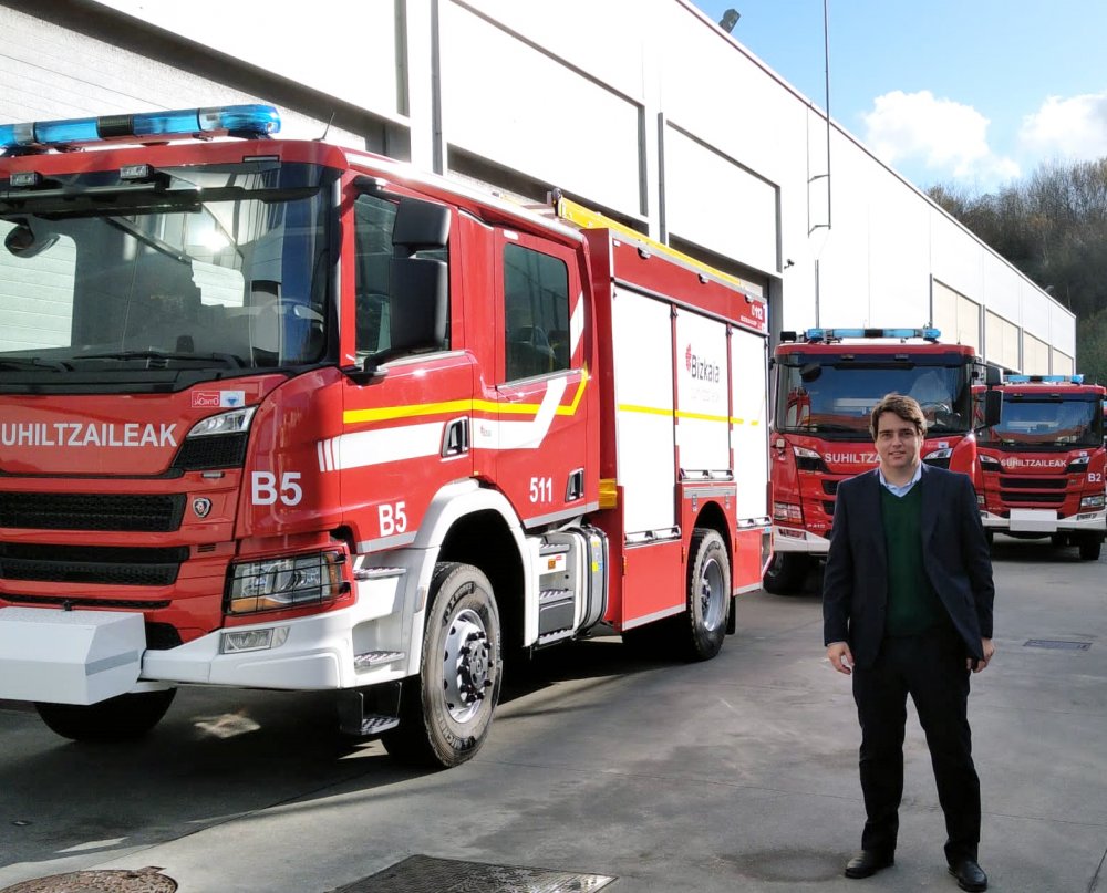 Vizcaya İl Genel Meclisi, 15 yeni araç alımı ile mevcut filonun neredeyse yüzde 25'ini yeniledi. Yeni kamyonlar, verimliliği artırarak ve hızlı müdahale kabiliyetlerini geliştirerek şehrin Yangın Önleme, İtfaiye ve Kurtarma Hizmetlerine katkı sunacak. Yedi milyon avroluk yeni filo yatırımı, tümü Allison tam otomatik şanzıman donanımlı altı adet ağır hizmet tipi itfaiye aracı, üç adet ağır hizmet tipi büyük tanklı arazöz, üç adet ilk müdahale aracı ve üç adet otomatik döner merdivenli aracı kapsıyor.