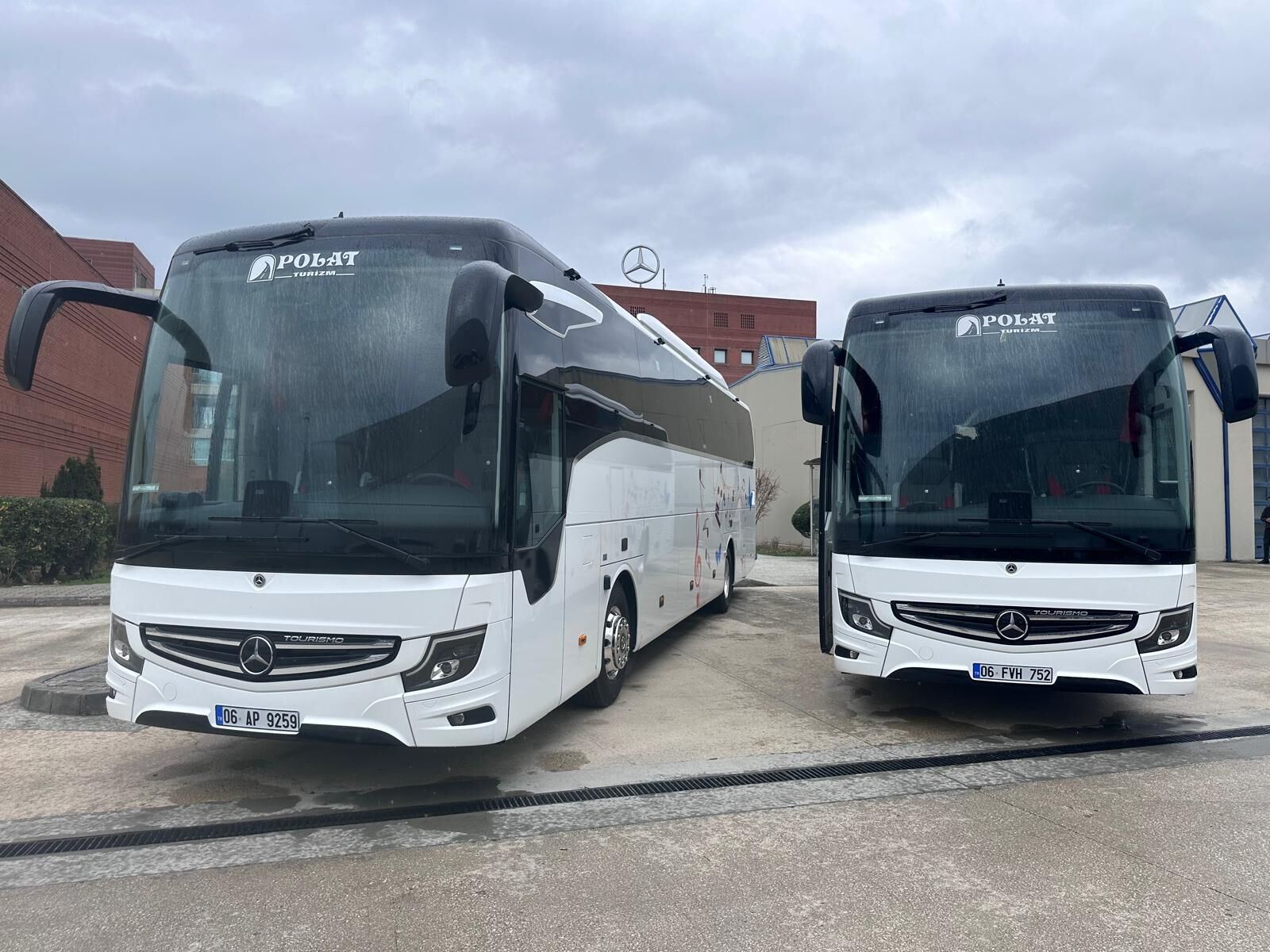 Mercedes-Benz Türk Pazarlama Merkezi’nde düzenlenen törenle Ankara merkezli Polat Turizm’e 3 adet Tourismo 15 RHD 2+2 otobüs teslimatı gerçekleştirildi. 2 Nisan 2026 tarihinde gerçekleşen teslimat törenine Polat Turizm firma sahipleri Yasin Polat, Rasim Polat, Mercedes-Benz Türk Bayi Satış Filo Koordinatörü Selen Bal, Hastalya Otomotiv Otobüs Satış Müdürü Deniz Gürer, Mengerler Ticaret Otobüs Satış Müdürü Hüseyin Tilki katıldı.