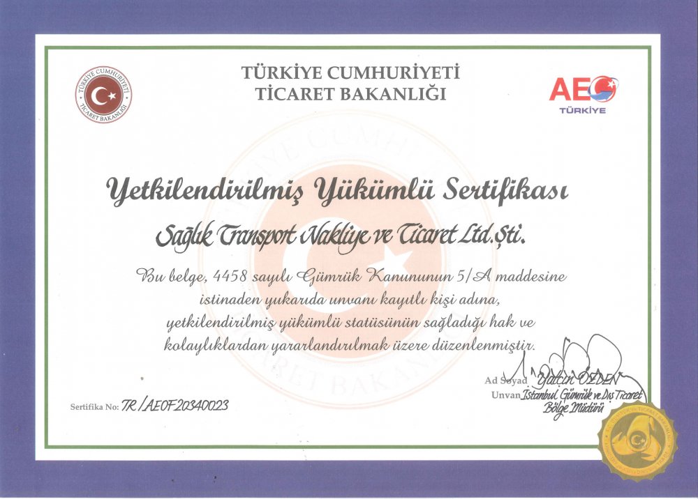 Sektöründe 42. Yılını dolduran ve bu tecrübeyle lojistik hizmetler sunan Sağlık Lojistik; Ticaret Bakanlığı tarafından verilen, şirketlere gümrük işlemlerinde kolaylık ve imtiyazlar getiren, uluslararası geçerliliğe sahip Yetkilendirilmiş Yükümlü Sertifikası (YYS) sayesinde, işlemlerin daha hızlı gerçekleştirilmesiyle zaman ve maliyet tasarrufunu arttırarak, müşterilerinin rekabet güçlerine ve iş hacimlerine daha çok destek olmayı hedefliyor.