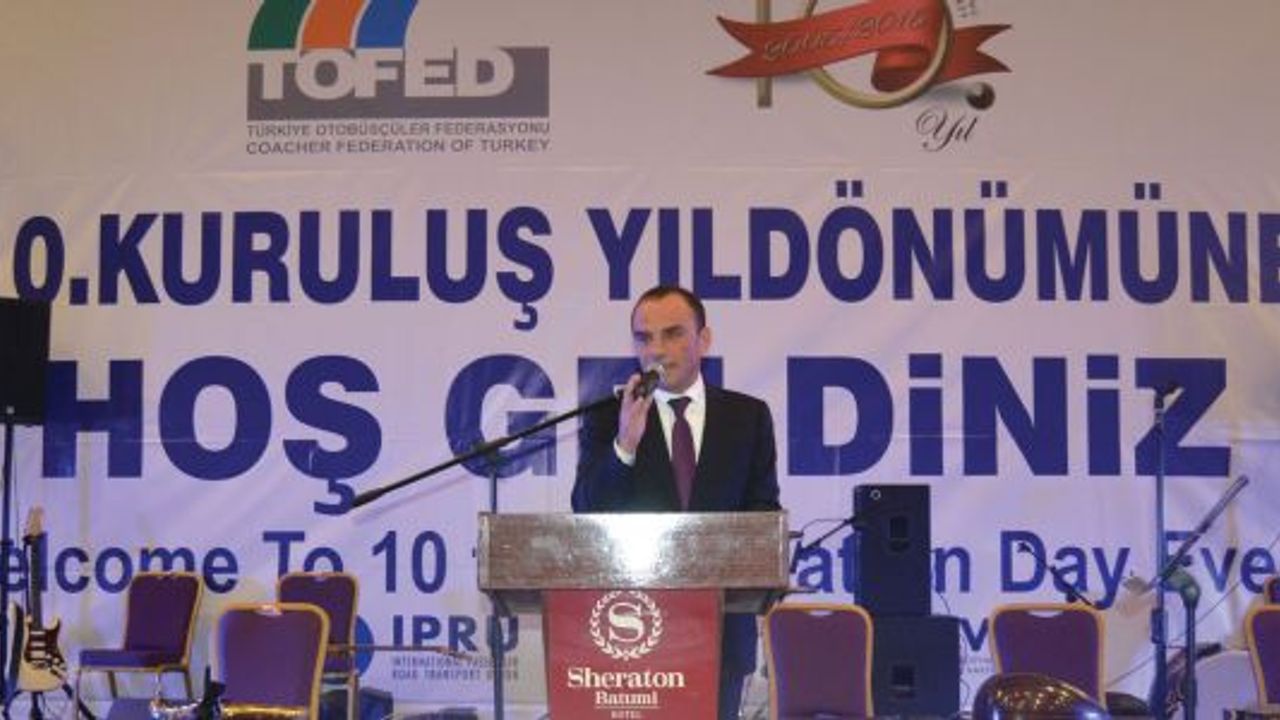 TOFED Başkanı Mehmet Erdoğan, TOFED’e, geride kalan 10 yılda kendilerine destek veren Ulaştırma Bakanlığı yetkililerine teşekkür etti ve 4 Ocak 2005 günü kurulan TOFED’in, resmi kurumlar nezdinde, sektör sorunlarını çözmek için çalıştığını söyledi: “Kurucu Başkanımız Sayın Galip Öztürk, 4 Ocak 2005 tarihinde sizlerle birlikte müracaatımızı yaparak kuruluşumuzu sağladı. Sırası ile Galip Öztürk, Ahmet Yalamanoğlu, Mustafa Yıldırım, Rüştü Terzi ve benimle birlikte onuncu yılımıza ulaştık. Federasyona emeği geçen başta Galip Öztürk olmak üzere bütün başkanlarımıza, yönetim kurulu üyelerimize, il başkanlarımıza ve delegelerimize çok teşekkür ediyorum. Ulaştırma Bakanlığı bize her zaman destek oldu. Bu anlamda, Ulaştırma bakanlığı yetkililerine, Sayın Bakanlarımıza, müsteşarımız Sayın Talat Aydın’a çok teşekkür ediyorum. Bize gösterdikleri katkılar için sponsorlarımıza da teşekkür ediyorum. Komşumuz Gürcistan’ın Acara özerk bölgesinin güzel şehri Batum’da olmaktan son derece mutluyuz. Gecemize katılan Ekonomi ve Turizm bakanları ile Belediye Bakanına çok teşekkür ediyorum.”