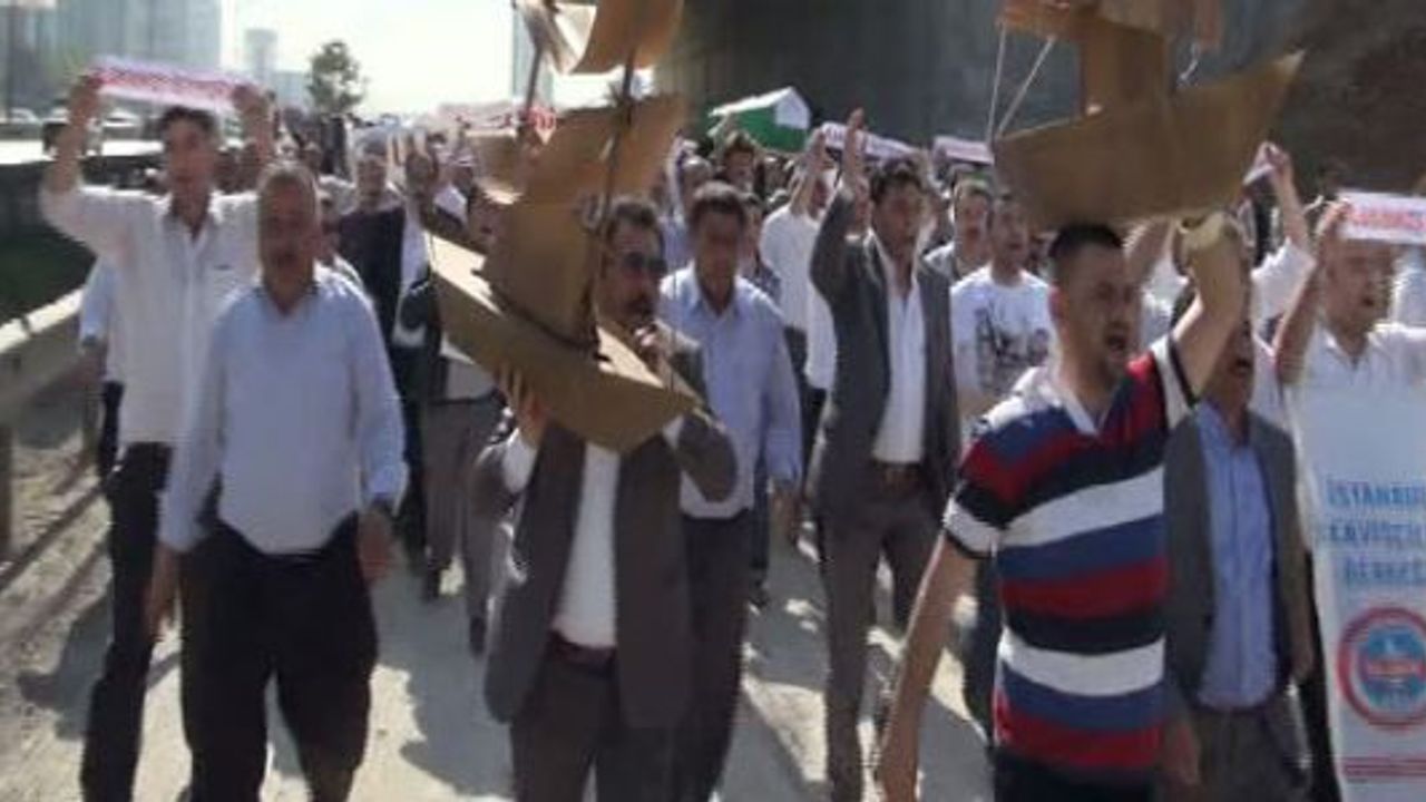 Soğanlık’da bulunan Ulaşım Koordinasyon Merkezi (UKOME) hizmet binası önünde basın açıklaması yapan servis şoförleri, temsili tabut taşıyıp ’bu yoldan geri dönüş yok’ diyerek gemi maketi yaktılar. Soğanlık’ta D-100 karayolu çevresinde saat 10.00 sıralarında toplanan yaklaşık 500 servis şoförü, minibüslerini çevredeki otoparklara park ettikten sonra üzerine "Ölmüş servis şoförü" yazılı temsili tabut taşıyarak UKOME hizmet binasına doğru yürüyüşe geçtiler. Burada çeşitli dövizler açan servis şoförleri "Plaka hakkımız söke söke alırız" şeklinde sloganlar attılar. Daha sonra gurup adına Ulaşım-İş Sendikası Genel Başkanı Abdurrahhim Barın basın açıklaması yaptı.