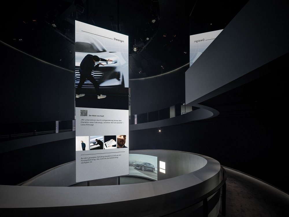 Audi’nin Autostadt'taki mevcut binasında yapılan değişiklikler kapsamında, özellikle iç kısımda yeniden bir modelleme gerçekleştirildi. İç teknolojinin yenilenmesinin yanı sıra, asıl odak noktasını sergi konsepti oluşturdu. Şeffaflığı artırmak, yeni sergi alanları yaratmak ve yeni görüş açıları sağlamak amacıyla, binanın merkezi merdiveninin de yer aldığı rotunda açıldı. Sürdürülebilirlik hedefiyle uyumlu yeni sergiler için bir değişiklik gerekliliğinden hareketle hayata geçirilen Audi House of Progress, Audi'nin sürdürülebilir hedeflerinin yalnızca ürünler, üretim ve tedarik zinciri için değil, aynı zamanda müşteriler ve otomobil tutkunlarının temas noktaları için de geçerli olduğunu ortaya koyuyor. Yeni konseptte, dijital içerikler, araçlar, mobilyalar gibi sergilenen ürünler ve yeni konular hızlı ve kolay bir şekilde entegre edilmeye uygun hale geliyor. Audi House of Progress'in girişinde ziyaretçileri şirketin gelecek vizyonlarına bir bakış sunan Vizyon Tablosu karşılıyor. Tablonun iki yanında, markayla ilgili bilgilerin yer aldığı yürüyen bant yollar, binanın iki katındaki sergi alanlarına açılıyor.