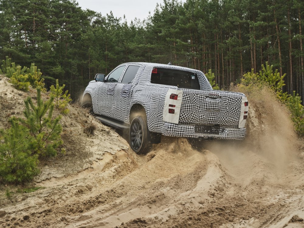 Önceki nesilde olduğu gibi Yeni Amarok’ta da yarım daire şeklindeki çamurluk davlumbazları, çoğu pick-up modelinin yuvarlak çizgisinin aksine düz bir çizgi formu ile, karakteristik bir Amarok özelliği olarak ayrışıyor. 21 inç ölçüsüne ulaşan alüminyum alaşımlı jantlar ve arazi lastikleri, güçlü bir görünüm sergiliyor. Yeni Amarok arkadan bakıldığında da dikkat çekici bir görünüm sergiliyor. Geniş bagaj kapağı, standart LED arka farlarıyla çerçeveleniyor. Kabartmalı Amarok yazısı, kapağın neredeyse tüm genişliğini kaplıyor. Önceki nesilde olduğu gibi, Yeni Amarok’ta iki çamurluk davlumbazı arasına bir Euro palet yüklemek için yeterli alan bulunuyor. Palet burada yük kancalarıyla bağlanabiliyor.