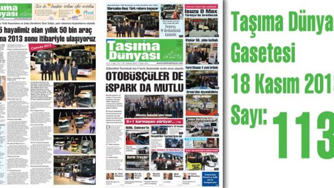 Taşıma Dünyası Gazetesi_113_PDF formatında 18 Kasım 2013 tarihli sayısını okumak için aşağıdaki linki tıklayınız.