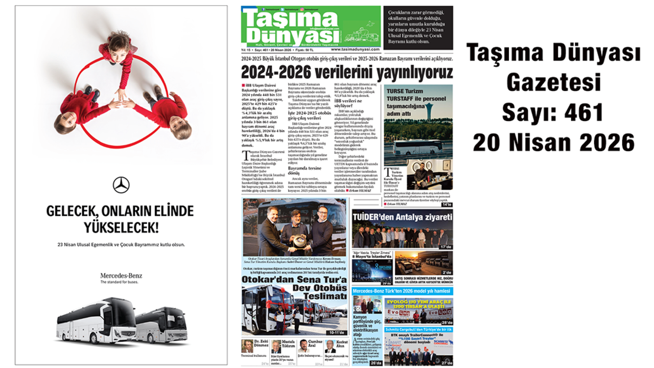 Taşıma Dünyası Gazetesi 20 Nisan 2026 tarihli 461. sayısını okumak için tıklayınız.