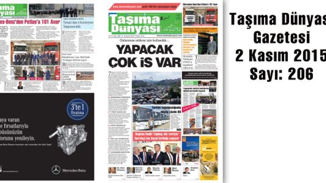 <span style="color: rgb(0, 0, 255);"><strong style="font-size: 11.8182px;"><span style="font-size: 16px;"><a href="http://tasimadunyasicom.teimg.com/tasimadunyasi-com/images/dosyalarim/Tasimadunyasi_206_Low.pdf">Taşıma Dünyası Gazetesi-206 PDF 2 Kasım 2015 tarihli sayısını okumak için tıklayınız.</a></span></strong></span><a href="http://tasimadunyasicom.teimg.com/tasimadunyasi-com/images/dosyalarim/Tasimadunyasi_147_Low.pdf" style="color: rgb(255, 0, 255); font-size: 18px; font-weight: bold;"><br /> </a><br /> <span style="font-size: 11.8182px;">Basılı gazeteniz </span><strong style="font-size: 11.8182px;">Taşıma Dünyası</strong><span style="font-size: 11.8182px;"> elinize ulaşmıyorsa, aşağıdaki iletişim bilgilerinden isteyebilirsiniz.</span> <br /> <br> <br /> <div><strong style="font-size: 11.8182px;">Taşıma Dünyası Gazetesi </strong></div> <div style="font-size: 11.8182px;">Tel: + 90 850 202 0 779</div> <div style="font-size: 11.8182px;">GSM: + 90 0532 779 21 82</div> <div style="font-size: 11.8182px;">e-mail: info@tasimadunyasi.com </div> <br style="font-size: 11.8182px;" /> <div style="font-size: 11.8182px;"><a href="http://www.tasimadunyasi.com/">www.tasimadunyasi.com </a></div> <div style="font-size: 11.8182px;"><a href="https://www.facebook.com/tasimadunyasi">https://facebook.com/tasimadunyasi</a></div> <div style="font-size: 11.8182px;"><a href="https://twitter.com/tasimadunyasi">https://twitter.com/tasimadunyasi</a></div><div class="article-source py-3 small "> </div>