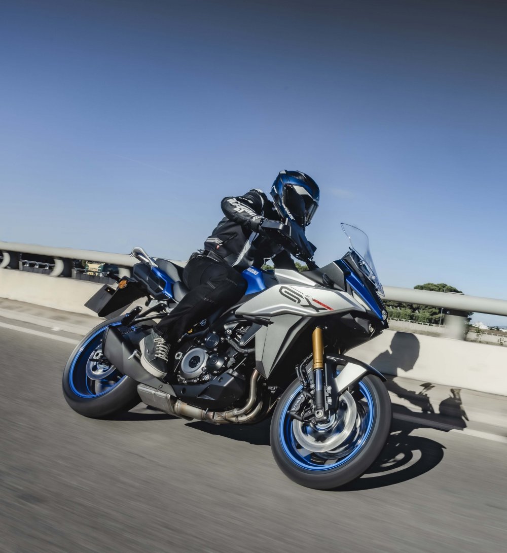 GSX ürün ailesinin diğer üyeleri olan GSX-S1000 ve GSX-S1000GT gibi sıralı dört silindirli 999 cc motorun görev yaptığı yeni GSX-S1000GX, bir uzun yol motosikletinin konforunu spor motosikletlerin adrenaliyle bir araya getiriyor. Yeni model, GSX-S1000GT gibi renkli TFT gösterge paneli ve bağlantı özellikleriyle üst düzey spor touring deneyimi sunuyor. GX ile GT versiyonları benzer yönlere sahip olsa da birbirinden ayrılan önemli özelliklere de sahipler. Daha uzun süspansiyon hareket mesafesi, ön ve arka tekerleklerde daha uzun hareket alanı sunarken araç ile zemin arasında daha fazla boşluk ve daha rahat dik bir sürüş pozisyonu sağlıyor. Bunun yanında, Suzuki’nin ilk elektronik süspansiyon sistemi olan Suzuki Gelişmiş Elektronik Süspansiyon (SAES) ve Suzuki'nin yeni teknolojisi olan Suzuki Adaptif Yol Stabilizasyon (SRAS) sistemiyle yepyeni bir süspansiyon performansı sunuyor. Bu teknolojiler bir araya gelerek GX’i şehirlerin asfalt kaplamalı ve kaldırımlı sokaklarından kırsal bölgelerdeki yollara ve otoyollara kadar çok çeşitli yol yüzeylerinde konforlu ve kontrol edilebilir kılıyor. Spor görünümüyle dikkat çeken GX, aynı zamanda dik sürüş pozisyonu ve ekipman özellikleri sayesinde uzun mesafeli sürüşlerde touring konforu sağlıyor.
