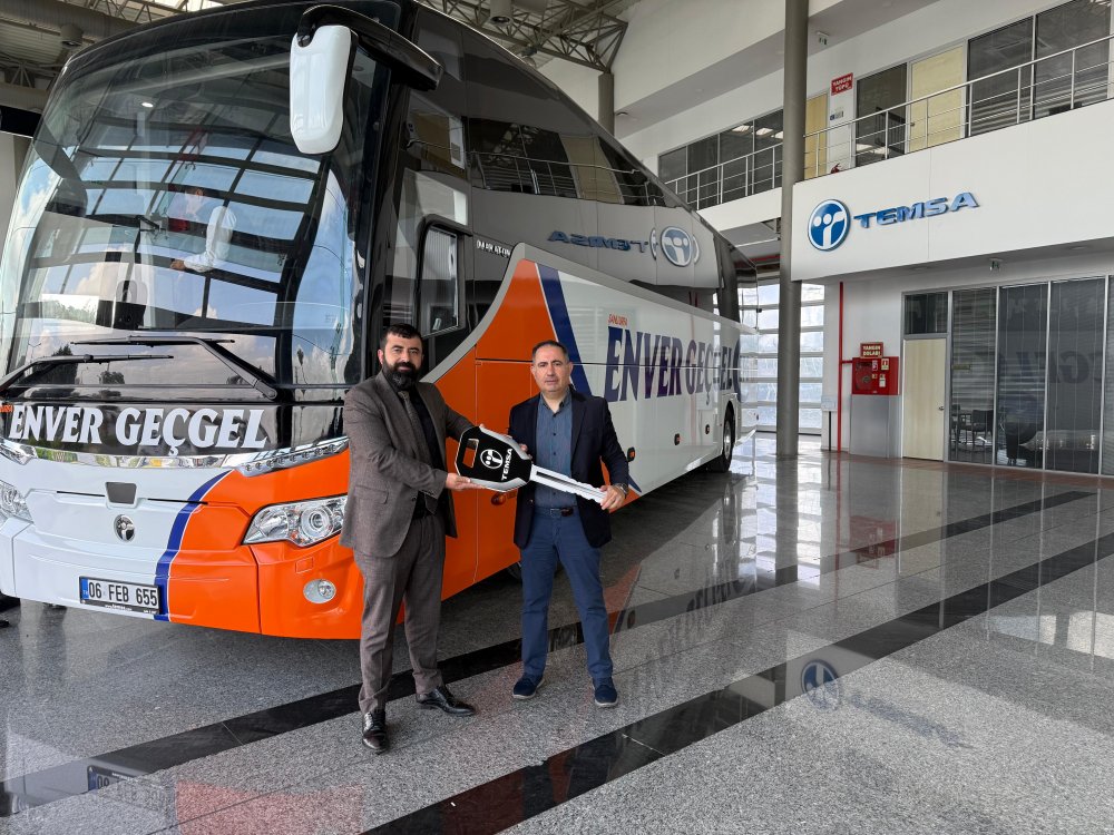 Şehirlerarası yolcu taşımacılığında hizmet yarışına yeni bir firma daha katıldı. 27 Nisan’da ilk seferini gerçekleştiren Şanlıurfa merkezli Enver Geçgel Turizm, ilk etapta TEMSA ile 10 adet Maraton anlaşması yaptı. 10 araçlık anlaşmanın ilk partisi olan 4 araç, 2 Mayıs 2025 tarihinde düzenlenen törenle Adana’da TEMSA Otobüs Bölge Satış Yöneticisi İlker Canbolat tarafından Enver Geçgel Turizm Genel Müdürü Aziz Geçgel’e teslim edildi.